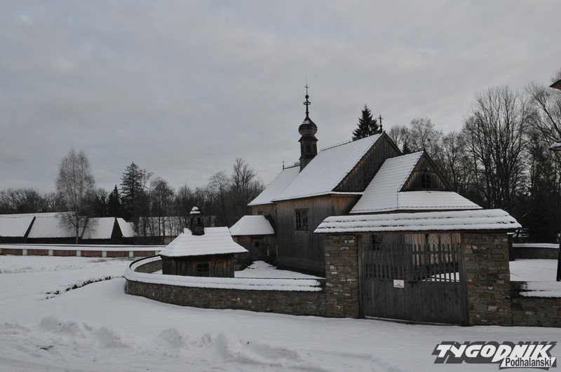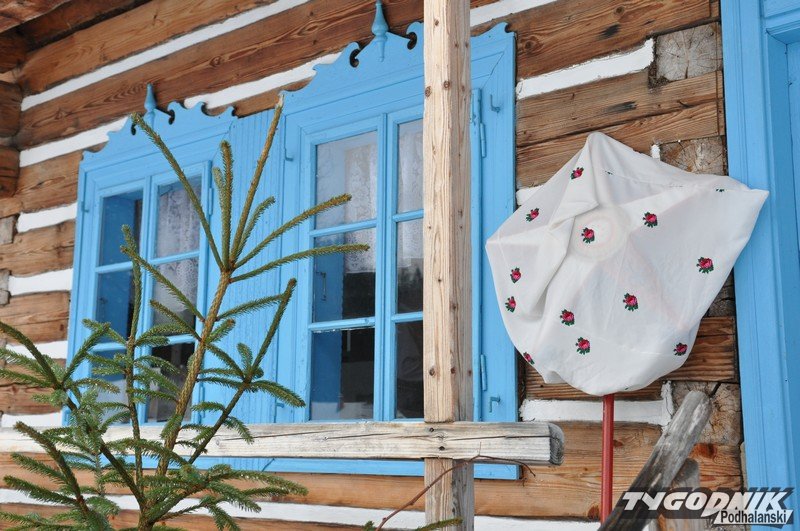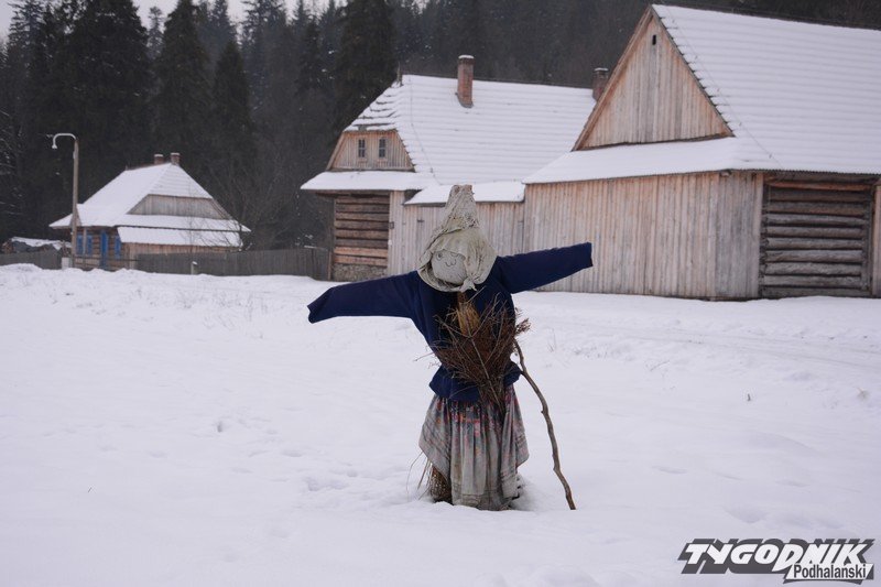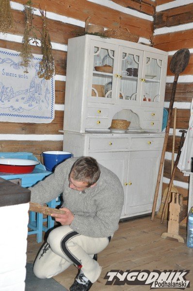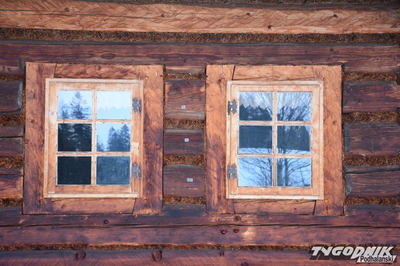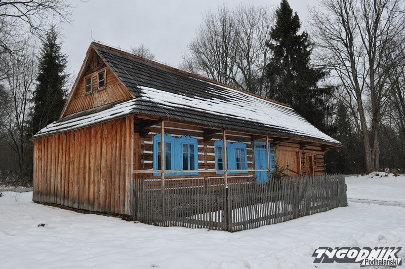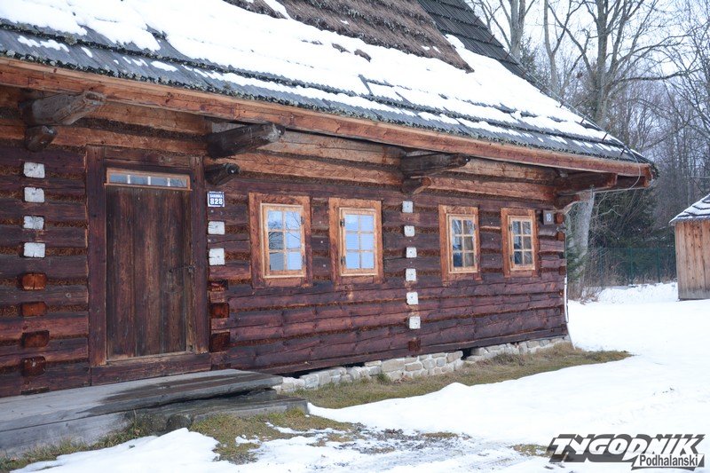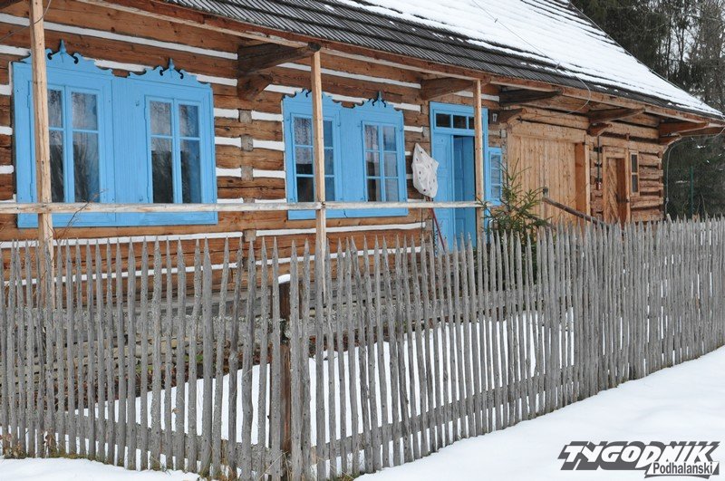 Smutno zrobiło się w Muzeum-Orawskim Parku Etnograficznym w Zubrzycy Górnej. Wszystko przykryte śniegiem. Ale czasem skansen ożywa. Ogień rozpalony w piecu ogrzewa izby.