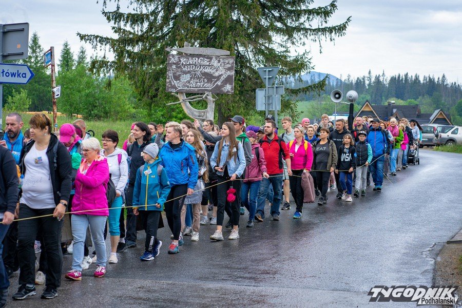 Tak XXV Pielgrzymka Sursum Corda z Zakopanego-Krzeptówek do Ludźmierza przemierza Szlak Papieski w Zębie. Pątnicy dostali poczęstunek, a witała ich muzyka zespołu "Zbójnicek".