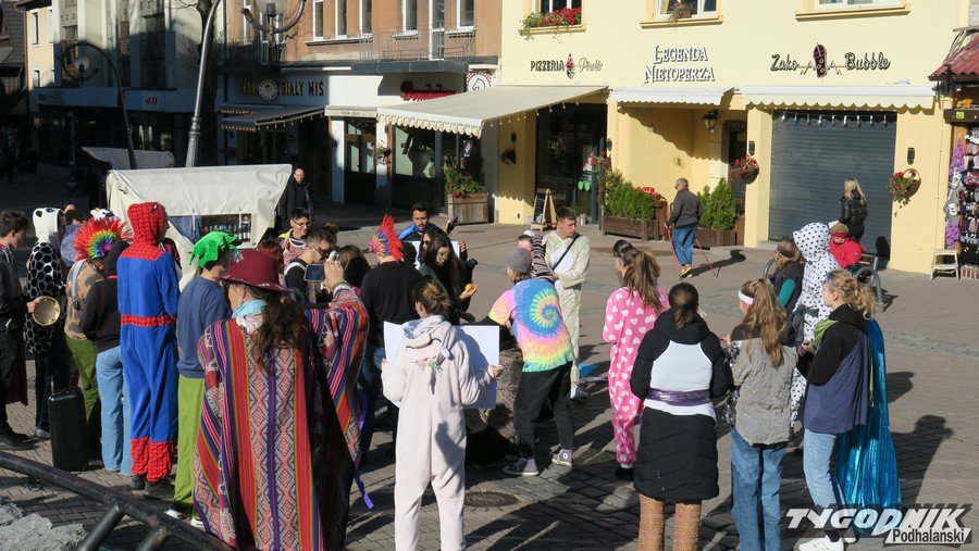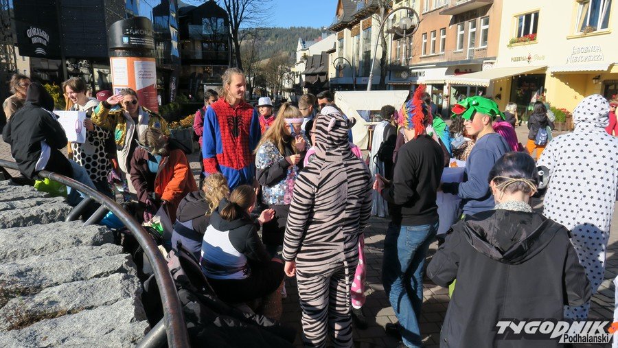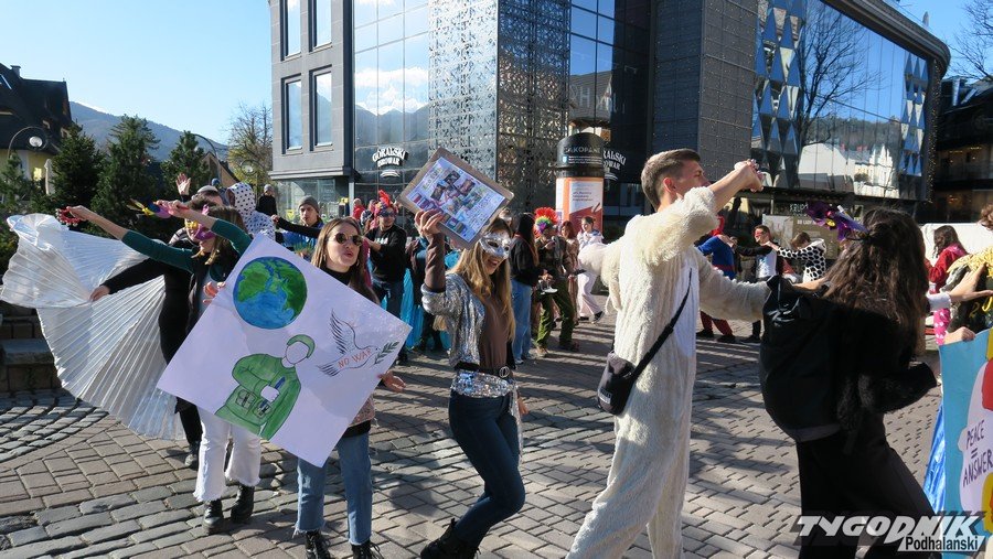 Pod antywojennymi hasłami barwny korowód młodzieży przemaszerował dziś Krupówkami przez Zakopane. Młodzi Czesi, Słowacy, Litwini, Turcy, Hiszpanie i Polacy w hippisowskich strojach manifestowali pod oczkiem wodnym przeciwko wojnie. Były kolorowe kreacje, antywojenne hasła na transparentach, muzyka i tańce. Przechodnie częstowani byli pomarańczami.