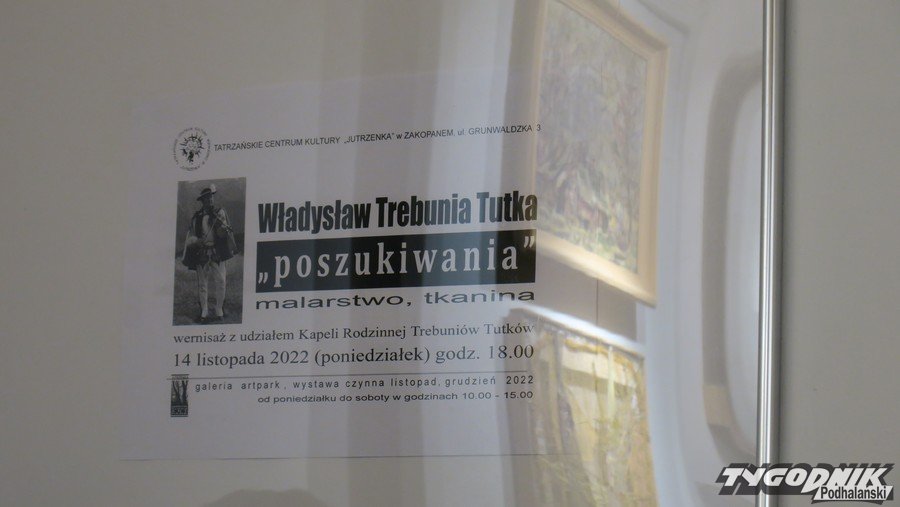 Władysław Trebunia-Tutka (1942-2012) artysta plastyk, wybitny skrzypek - prymista podhalański, multiinstrumentalista i śpiewak, nauczyciel muzyki góralskiej, Tischnerowski Platon. Z zespołem Trebunie-Tutki koncertował prawie we wszystkich krajach europejskich, w Azji i w Ameryce Płn. W poniedziałkowy wieczór w gościnnych progach Galerii ART-Park w Tatrzańskim Centrum Kultury "Jutrzenka" otwarto wystawę prac Władysława Trebuni-Tutki zatytułowaną "Poszukiwania". Prace są częścią kolekcji córki artysty Anny Trebuni-Wyrostek.