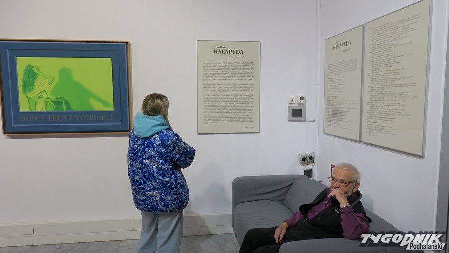 W Miejskiej Galerii Sztuki w Zakopanem otwarto dziś wystawę prac Arkadiusza Karapudy zatytułowaną "...też prawda". Obrazy przemawiają do widza nie tylko wizualnie ale też werbalnie, a to za sprawą anglojęzycznych opisów na wielkich, malowanych obramowaniach. Kuratorka wystawy Katarzyna Kasia podkreśla, że tytułowa prawda w obrazach Arkadiusza Karapudy kryje się w detalach.