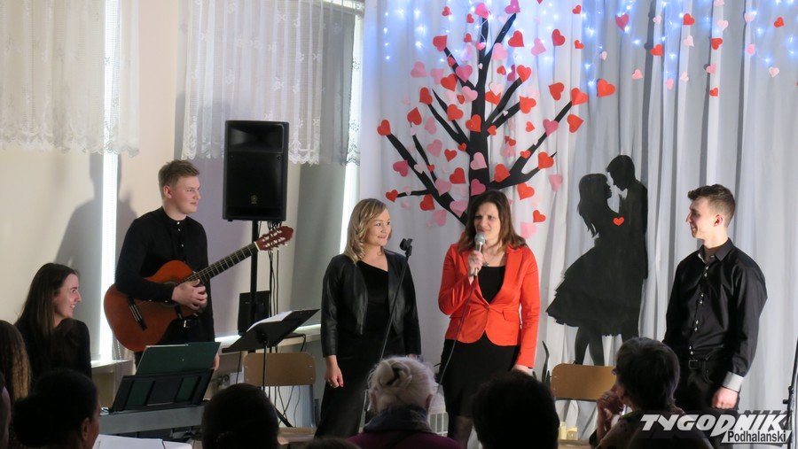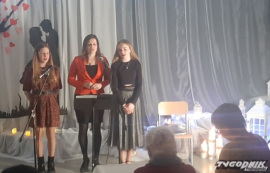 Były piękne wiersze, były piosenki wielu autorów i mini-rewia uczniowskich talentów. W Szkole Podstawowej nr 4 w Zakopanem zorganizowano dziś koncertowy wieczór poetycki "Lirycznie o miłości" połączony z wernisażem prac Joanny Strączek-Bojdy. Przed publicznością wystąpili m. in. Hanka Wójciak, Dominika Białoń i Andrzej Bienias, aktor Teatru Witkacego. Z utalentowanymi uczennicami Marią Łukaszczyk i Karoliną Toczek wystąpiła dyrektor szkoły Halina Para.