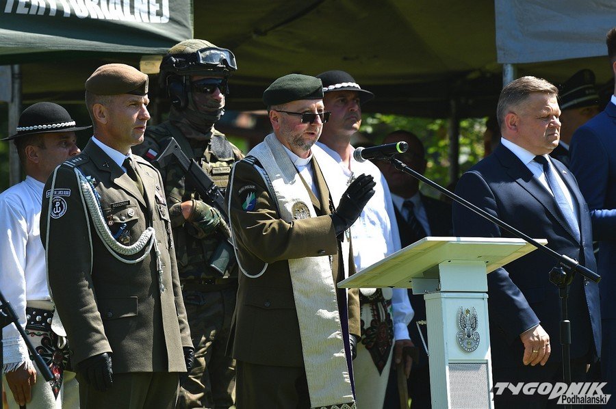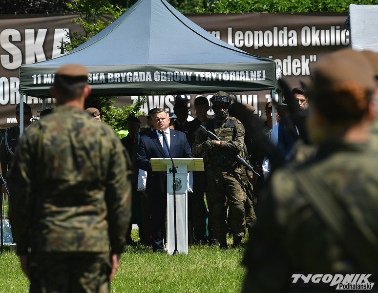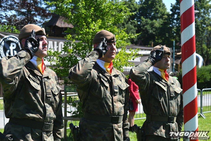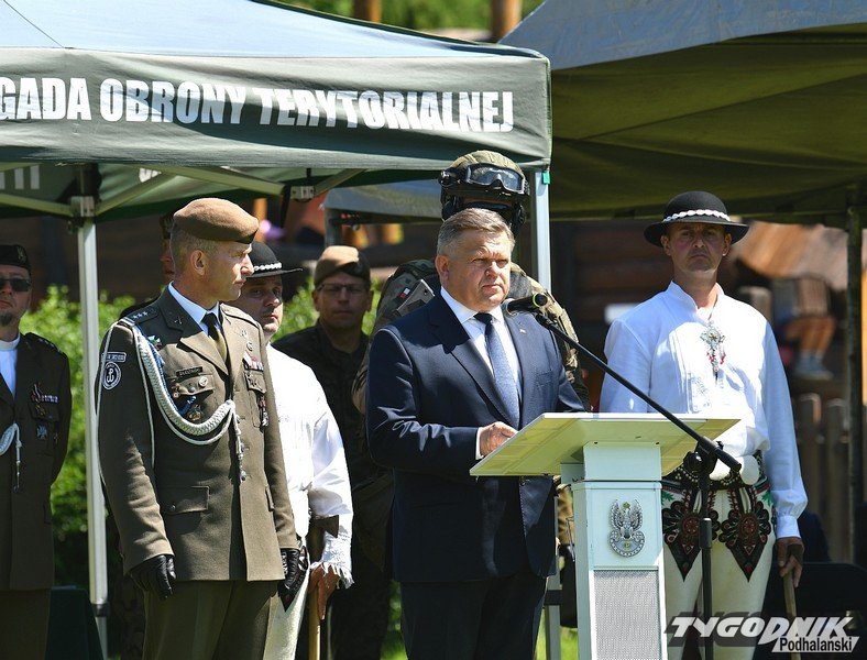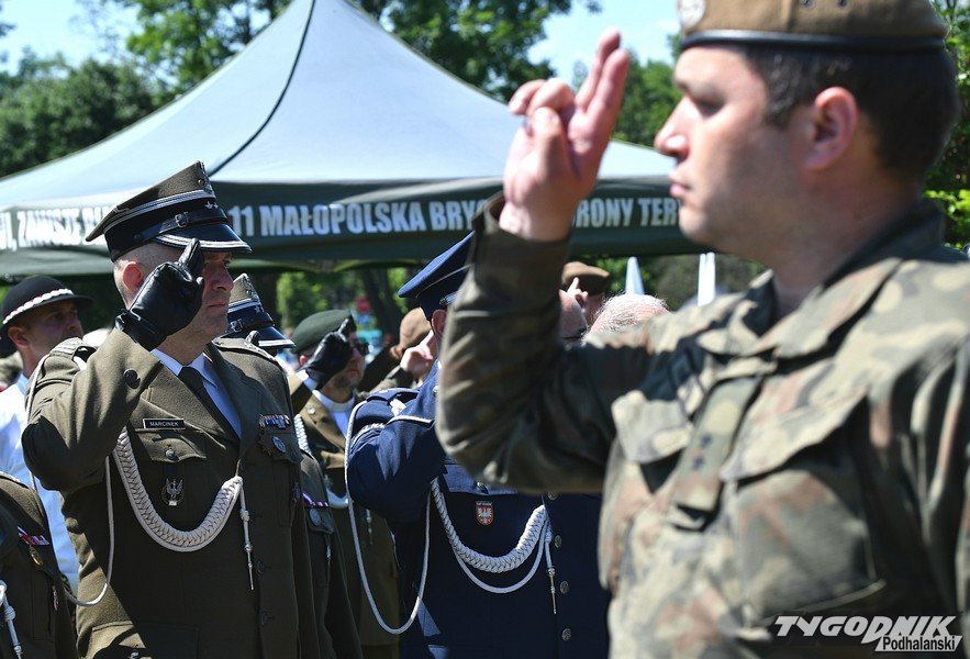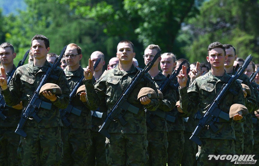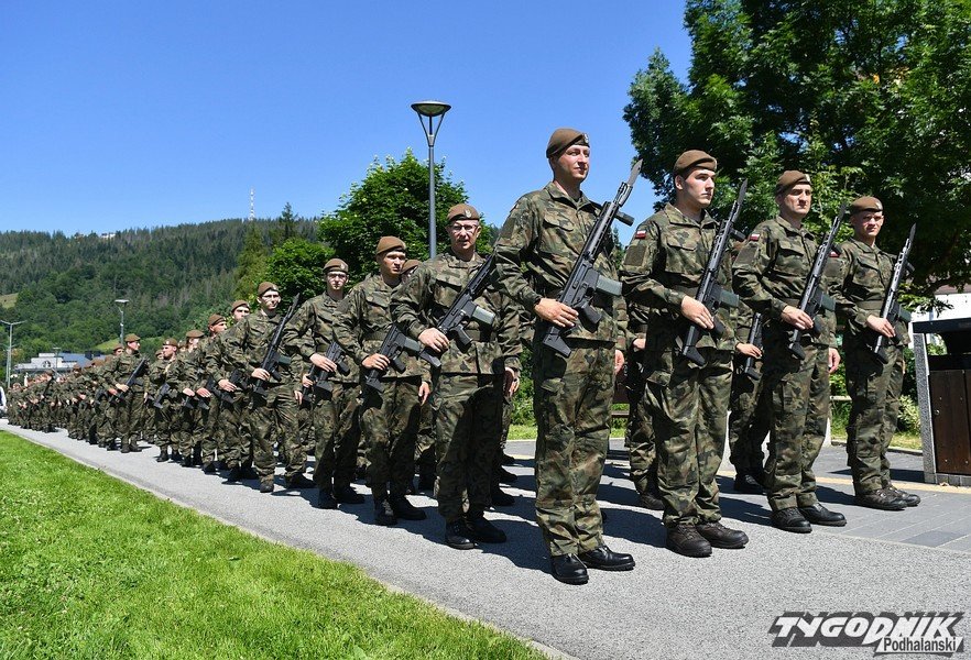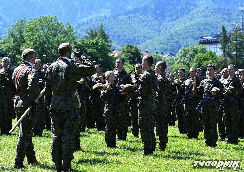 W Zakopanem na Równi Krupowej ślubowało dziś blisko stu żołnierzy Wojsk Obrony Terytorialnej. Wcześniej przeszli 16-dniowe, podstawowe szkoleniu w ramach Wakacji z 11 Małopolską Brygadą Obrony Terytorialnej. Trafią do kilku batalionów - 114. Batalionu WOT w Limanowej, 112. Batalionu WOT w Tarnowie, 111. Batalionu WOT w Krakowie i 113. Batalionu WOT w Oświęcimiu. W dzisiejszych uroczystościach wzięli udział m. in. Ryszard Terlecki, wicemarszałek Sejmu RP, sekretarz stanu Andrzej Gut-Mostowy z Ministerstwa Sportu i Turystyki oraz przedstawiciele władz wojskowych, samorządowych i powiatowych.