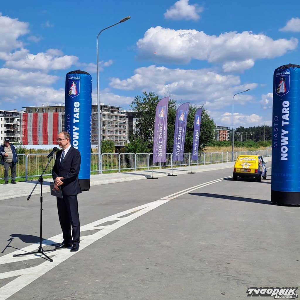 - Nie mogło być lepszej daty na otwarcie naszej inwestycji - mówił burmistrz Grzegorz Watycha. W piątek 11 sierpnia rozpoczął się w Nowym Targu tegoroczny Jarmark Podhalański. Przemawiali też - jak powiedział Marcin Kudasik - nasi parlamentarzyści. Ks. Jan Karlak, proboszcz w parafii św. Jana Pawła II poświęcił nowy trakt drogowy. Jako pierwszy przejechał nim kierowca fiata126p z w kolorach nowotarskiej "Szarotki", jako pasażer jechał burmistrz Watycha, a wiceburmistrz Wojtaszek był starterem. Pojawili się też kolarze z miejskiego klubu.