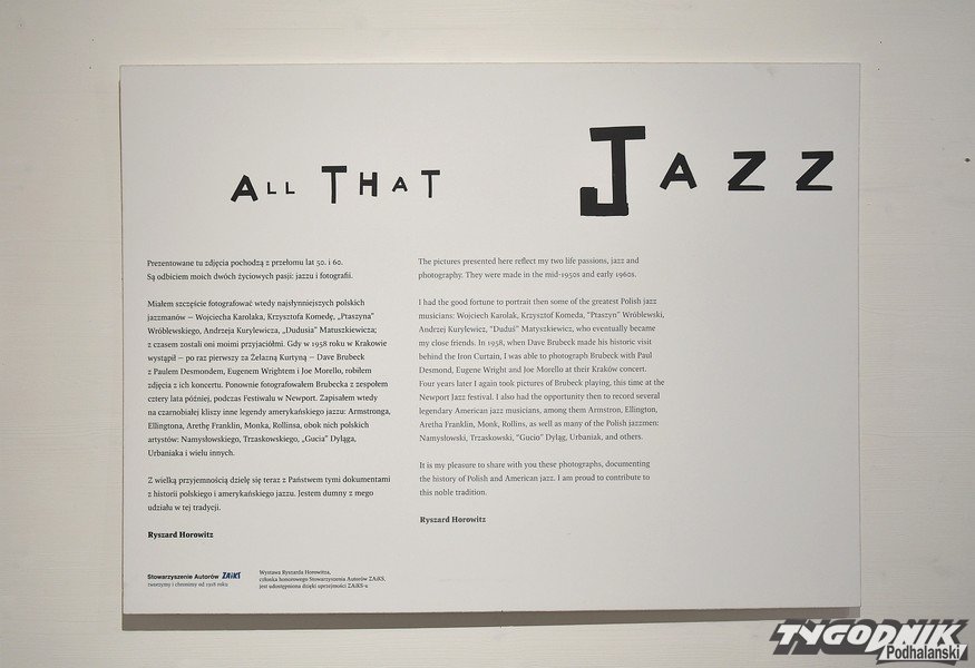 Wystawa "All That Jazz" to portrety muzyków jazzowych, wykonane przez Ryszarda Horowitza na przełomie lat 50' i 60' XX wieku w Krakowie oraz w USA. Na wystawę zaprasza Zakopiańskie Centrum Kultury, Miejska Galeria Sztuki im. Wł. hr. Zamoyskiego oraz Stowarzyszenie im. Mieczysława Karłowicza w Zakopanem. Projekt jest częścią jubileuszowej, piętnastej edycji Międzynarodowego Festiwalu Muzyki Kameralnej "Muzyka na Szczytach", który startuje już dziś 9 września.