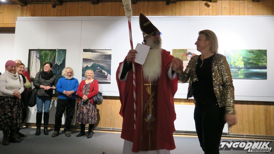 Grafiki, instalacje multimedialne, rzeźby, obrazy w ramach wystawy "Obecni w Zakopanem" podziwiać można na czasowej ekspozycji w Galerii im. Władysława Hasiora w Zakopanem. Na wernisaż przybyli liczni goście wraz z artystami, autorkami i autorami prac. A także niespodziewany gość - Święty Mikołaj, który częstował zebranych słodkościami.