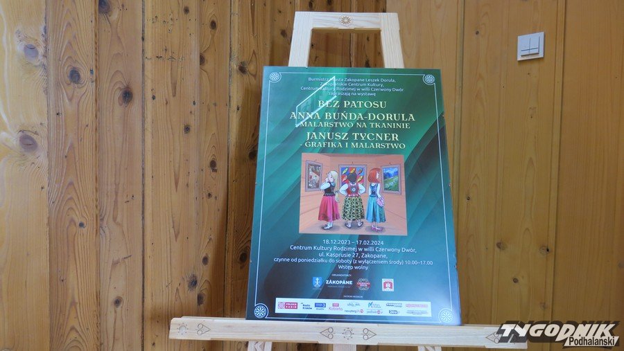 Centrum Kultury Rodzimej w willi "Czerwony Dwór" w Zakopanem prezentuje niecodzienną ekspozycję "Bez patosu". Dwójka utalentowanych twórców ze Suchego prezentuje swe dokonania artystyczne. Anna Buńda-Dorula zaprasza do oglądania ludowych strojów, które ozdabia w swej pracowni malarskimi wzorami. A Janusz Tycner prezentuje swe prace graficzne i malarstwo sztalugowe, z którego ilustrator, także współpracownik "Tygodnika Podhalańskiego", jest nieco mniej znany. Maluje pejzaże, portrety, martwą naturę. Jednak to jego wesołe ilustracje pokazują nam barwny świat Podhala. I nie tylko.