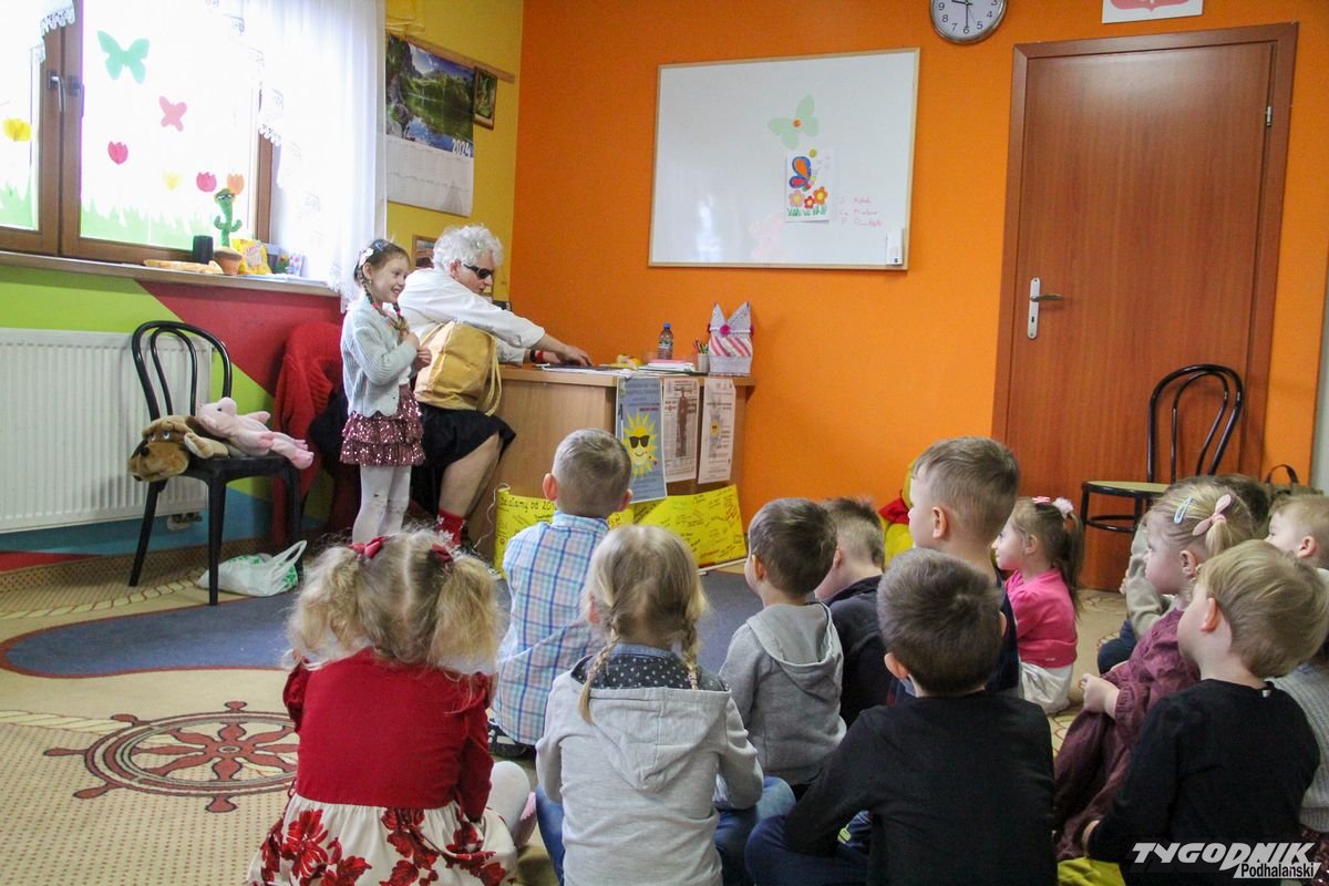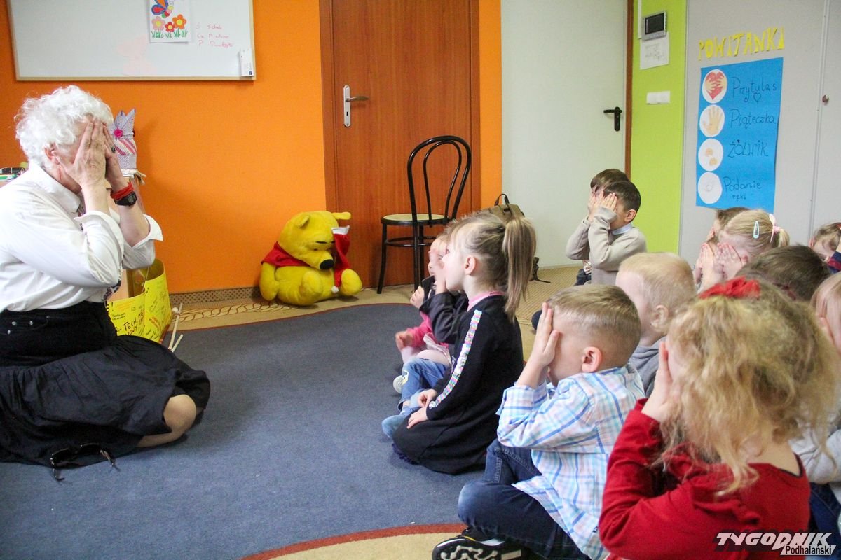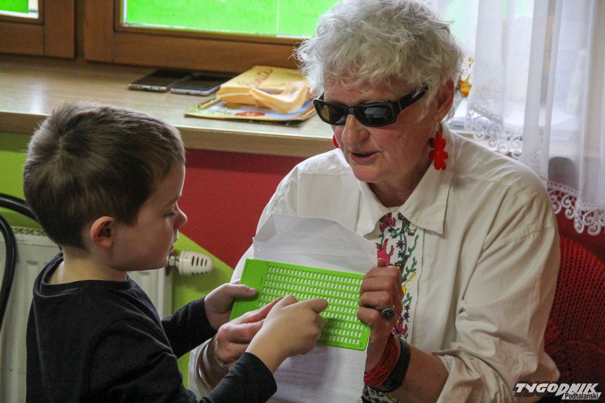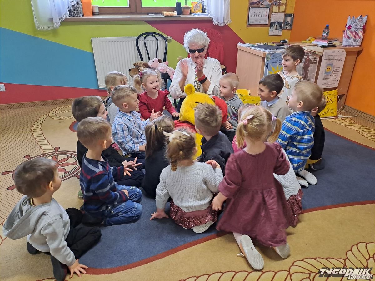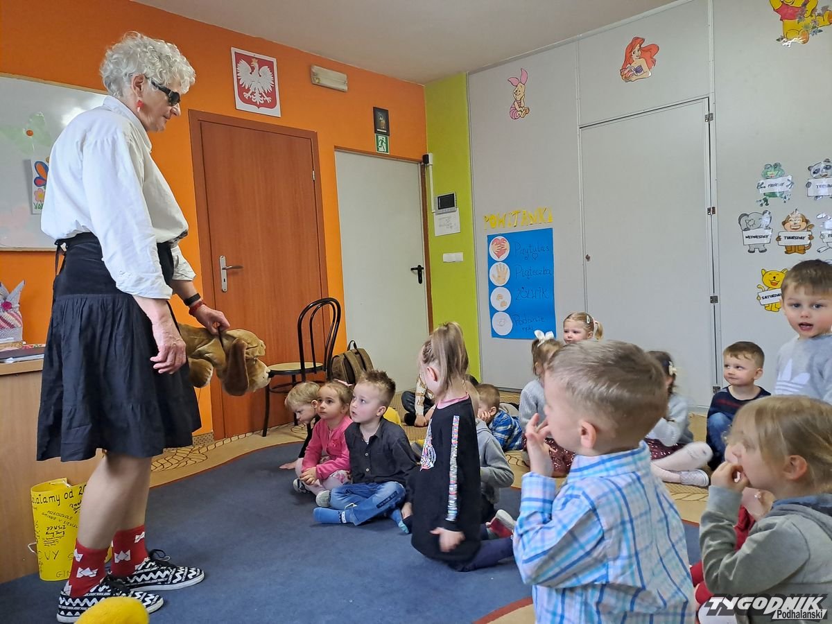 Początkowa rezerwa u maluchów szybko znika, gdy Pani Basia w ciemnych okularach prosi by zaśpiewać piosenkę, a potem siada z nimi na dywanie i opowiada o swoim świecie. Świecie, w którym nie widać nic, trzeba się umieć odnaleźć, a także potrafić prosić o pomoc. I tego jak pomóc niewidomemu uczyła przedszkolaki.