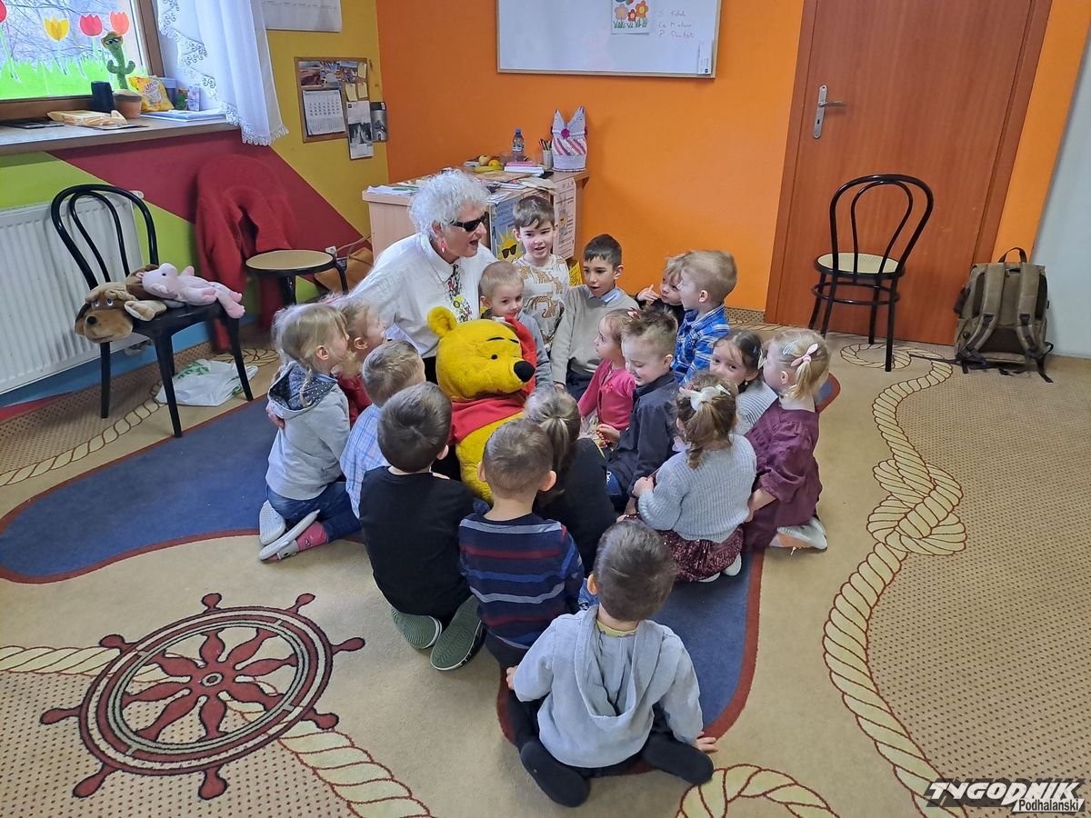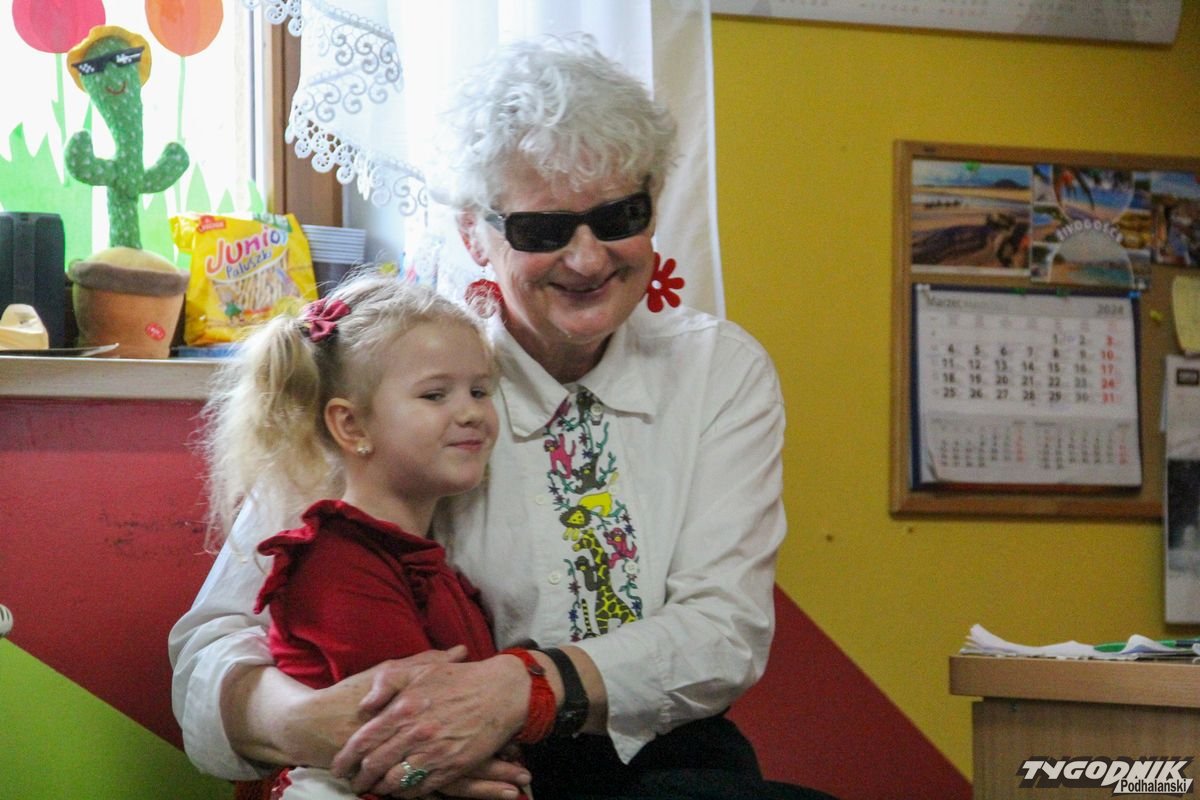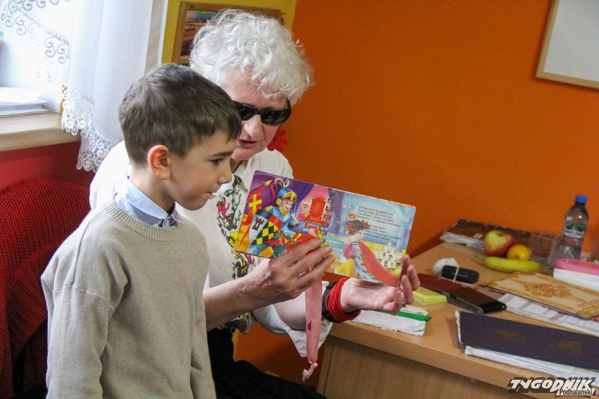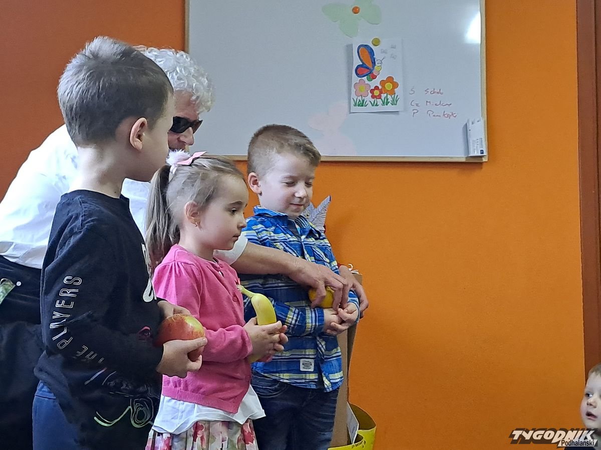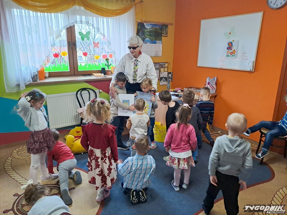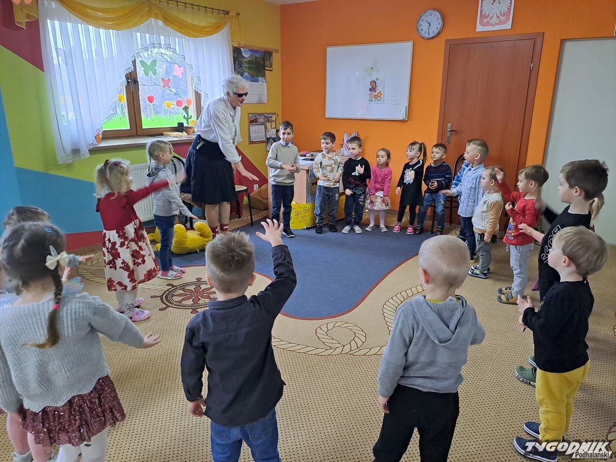 Początkowa rezerwa u maluchów szybko znika, gdy Pani Basia w ciemnych okularach prosi by zaśpiewać piosenkę, a potem siada z nimi na dywanie i opowiada o swoim świecie. Świecie, w którym nie widać nic, trzeba się umieć odnaleźć, a także potrafić prosić o pomoc. I tego jak pomóc niewidomemu uczyła przedszkolaki.