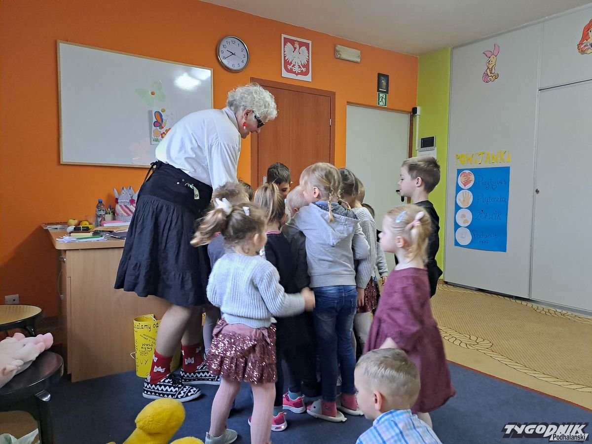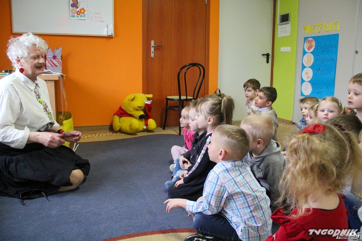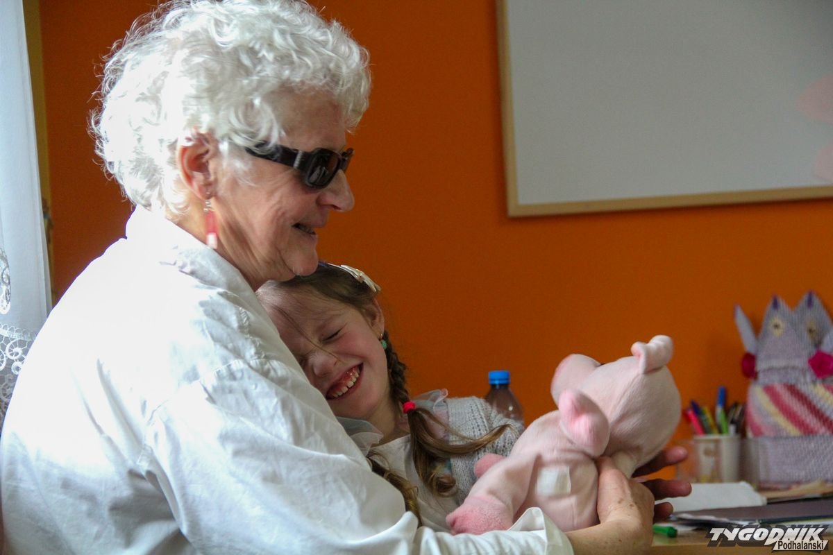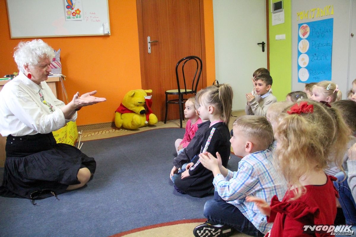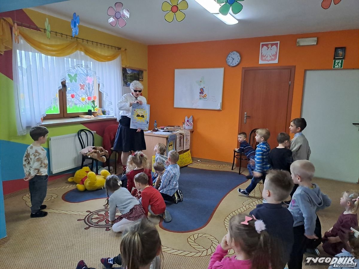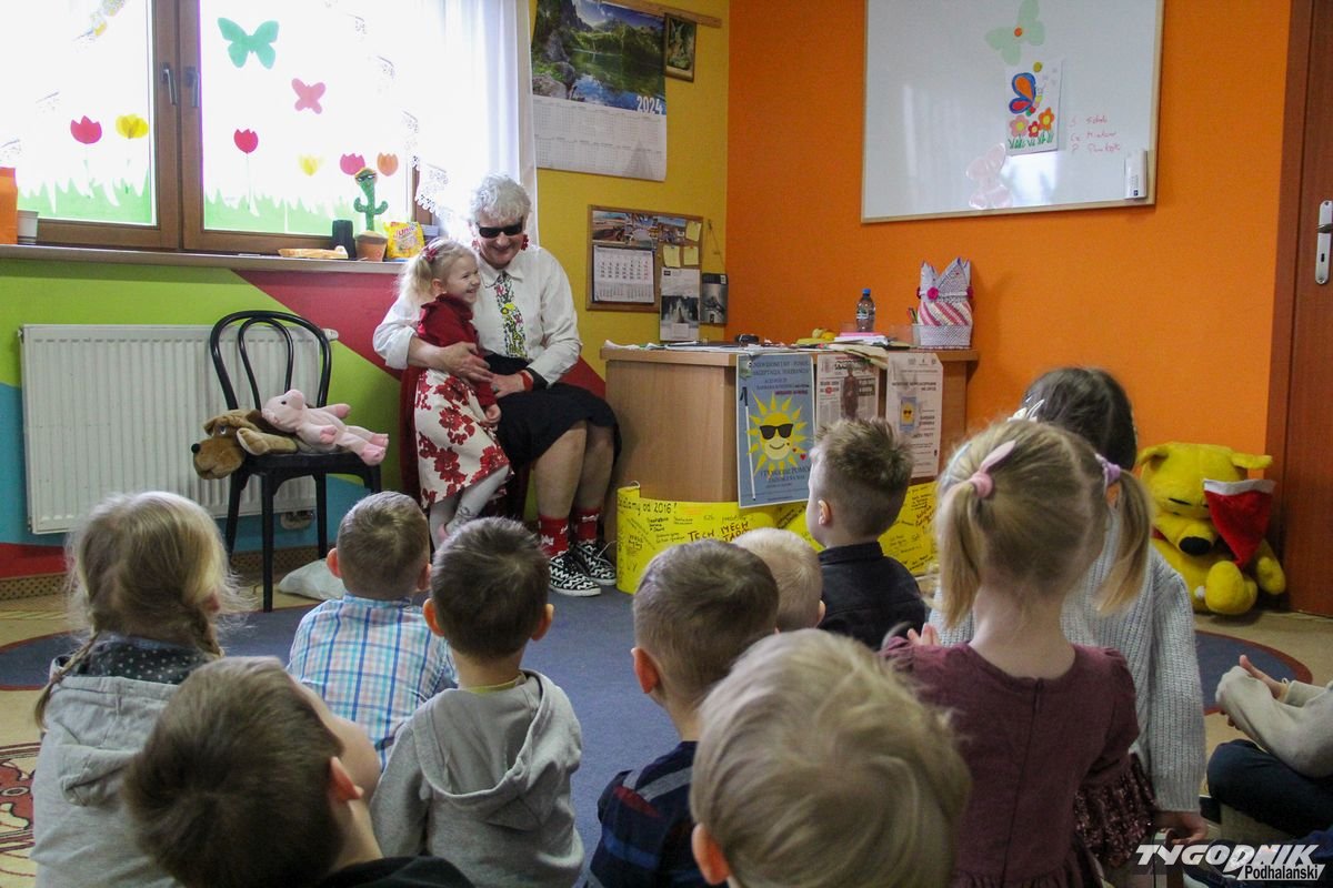 Początkowa rezerwa u maluchów szybko znika, gdy Pani Basia w ciemnych okularach prosi by zaśpiewać piosenkę, a potem siada z nimi na dywanie i opowiada o swoim świecie. Świecie, w którym nie widać nic, trzeba się umieć odnaleźć, a także potrafić prosić o pomoc. I tego jak pomóc niewidomemu uczyła przedszkolaki.