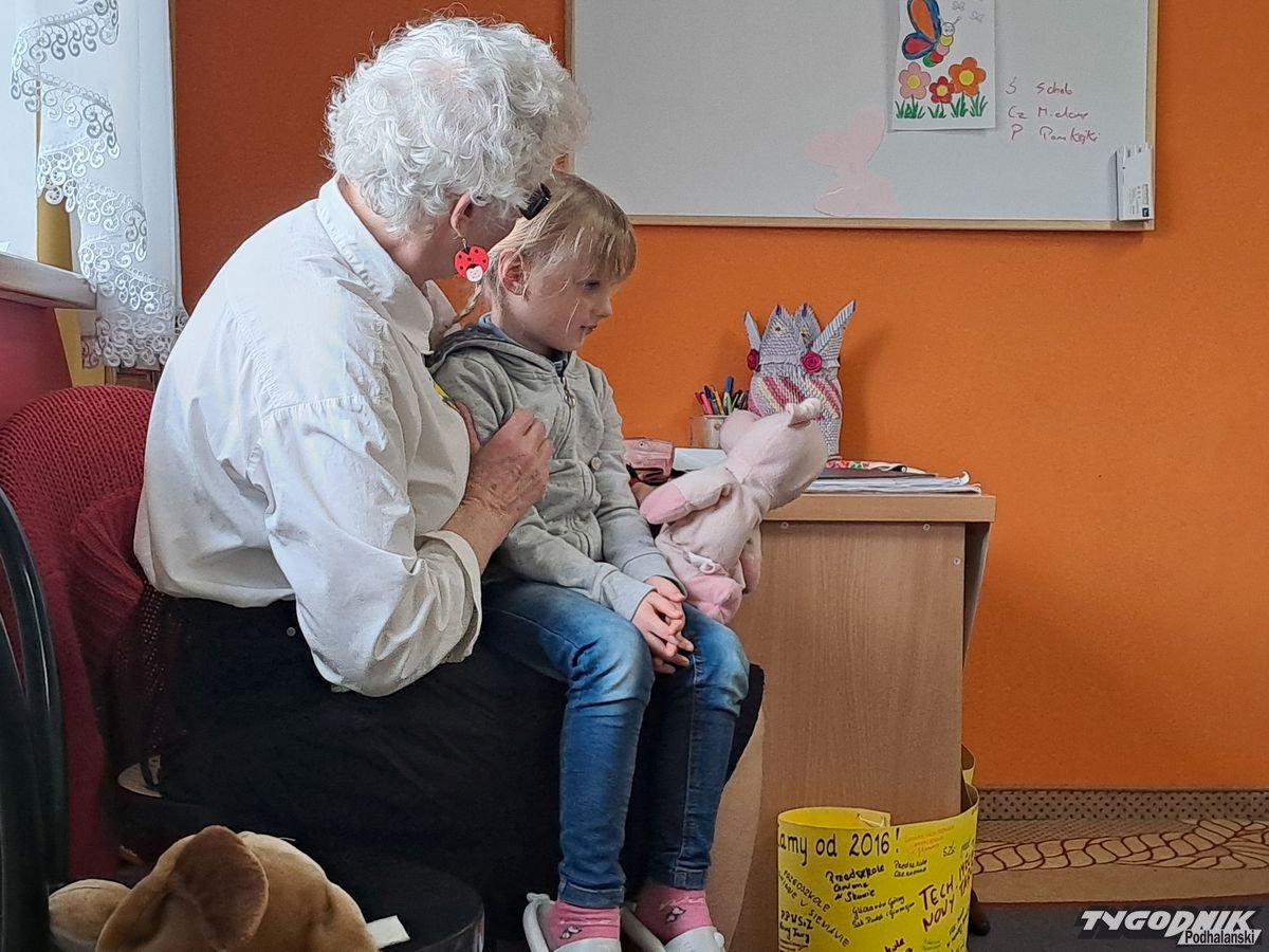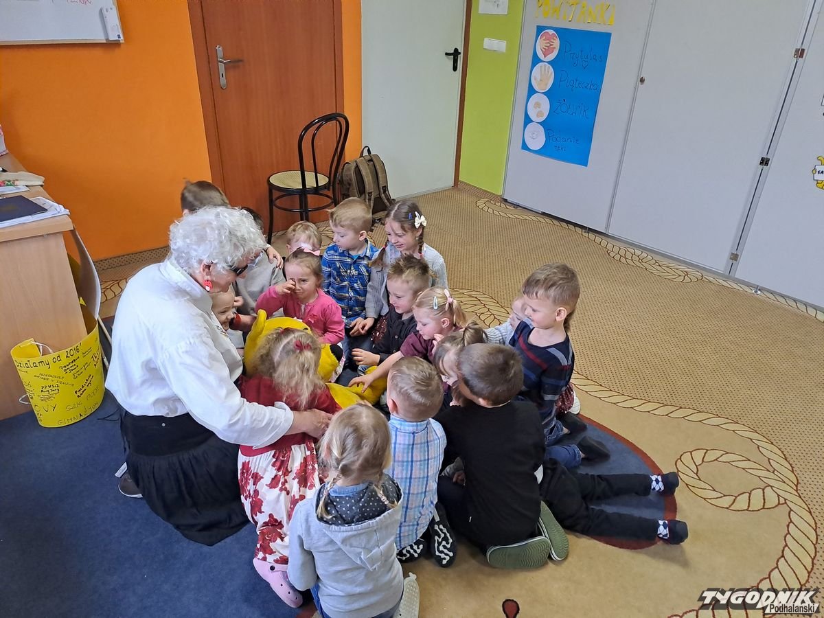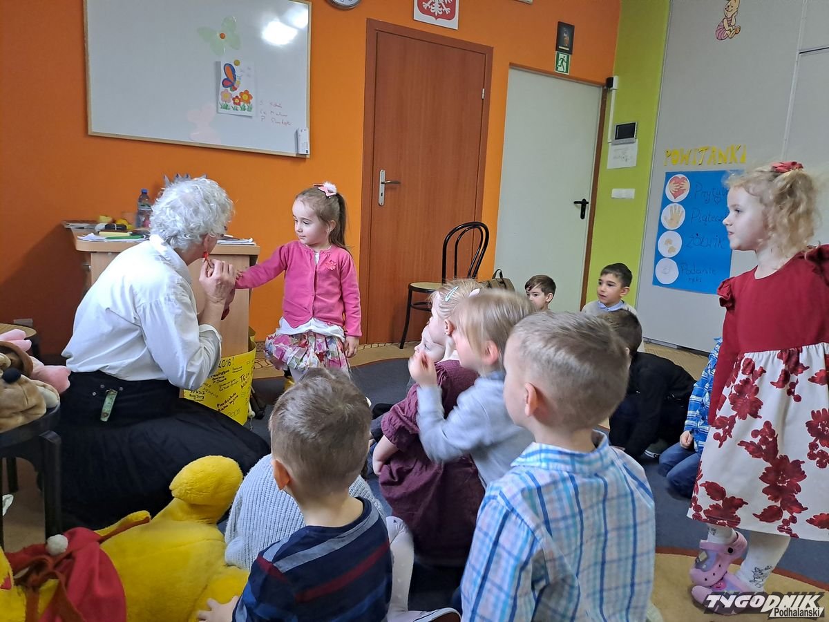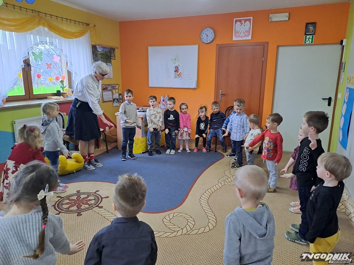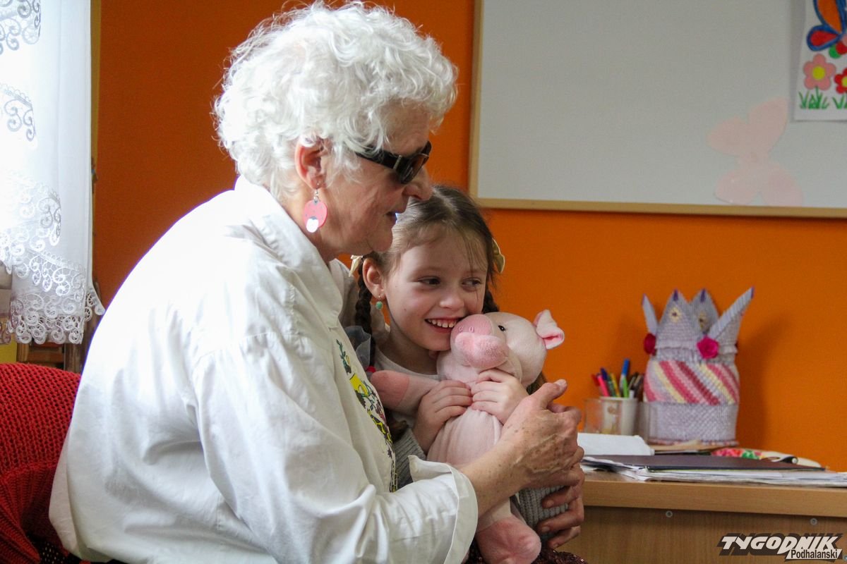 Początkowa rezerwa u maluchów szybko znika, gdy Pani Basia w ciemnych okularach prosi by zaśpiewać piosenkę, a potem siada z nimi na dywanie i opowiada o swoim świecie. Świecie, w którym nie widać nic, trzeba się umieć odnaleźć, a także potrafić prosić o pomoc. I tego jak pomóc niewidomemu uczyła przedszkolaki.