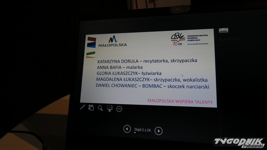 Pedagogiczna Biblioteka Wojewódzka w Nowym Sączu świętuje w tym roku 70 urodziny. Jej filie znajdują się w Gorlicach, Limanowej, Zakopanem, Nowym Targu, Rabce-Zdroju i Mszanie Dolnej. Właśnie w Zakopanem w gościnnych progach Kina "Miejsce", dzięki uprzejmości Towarzystwa Gimnastycznego "Sokół" Gniazdo w Zakopanem odbyła się dziś uroczystość Małopolska Wspiera Talenty. Akcja ma popularyzować czytelnictwo, a przy okazji pokazywać zdolną młodzież naszego regionu.