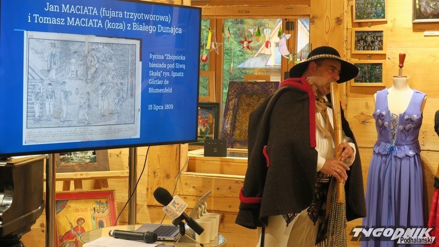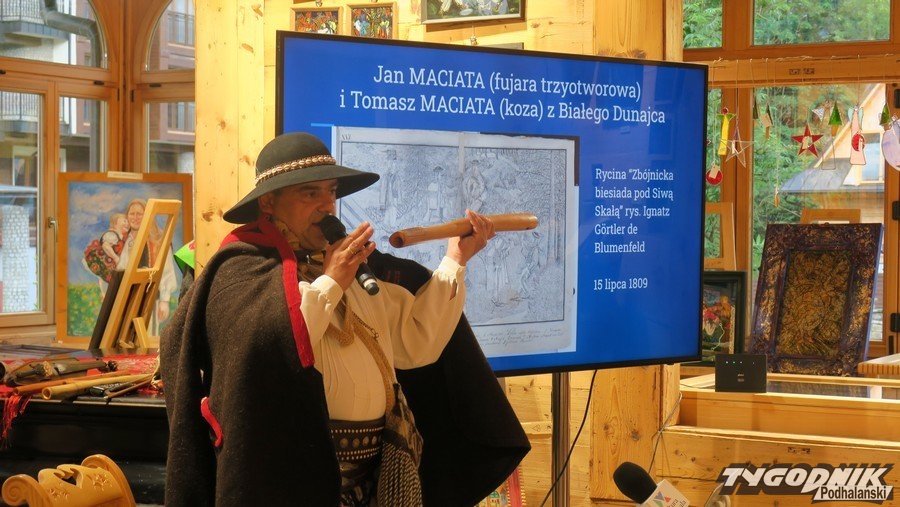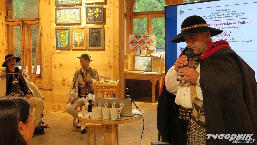 W willi "Czerwony Dwór" w poniedziałkowy wieczór wykład na temat instrumentów pasterskich budowanych na Podhalu dał Krzysztof Gocał. Nie tylko opowiadał, ale też prezentował jak gra się na poszczególnych instrumentach. Gości witała szefowa Centrum Kultury Rodzimej, Małgorzata Wonuczka-Wnuk.