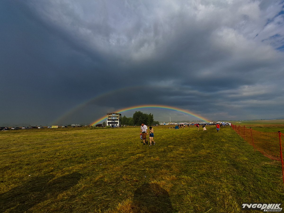 W niedzielne popołudnie nie tylko pogoda robiła podniebne wolty. Na nowotarskim lotnisku przede wszystkim mogliśmy podziwiać niezwykłych pilotów za sterami niezwykłych maszyn. I choć ulewa przegoniła część publiczności przed pokazem myśliwca F-16, to tęcza i powracające gorące promienie słońca pozwoliły wytrwać do końca. A warto było!