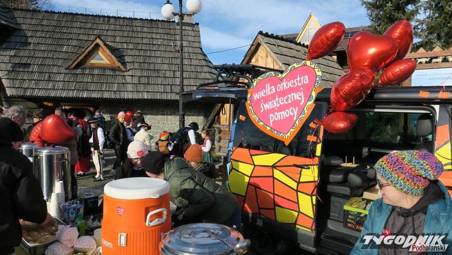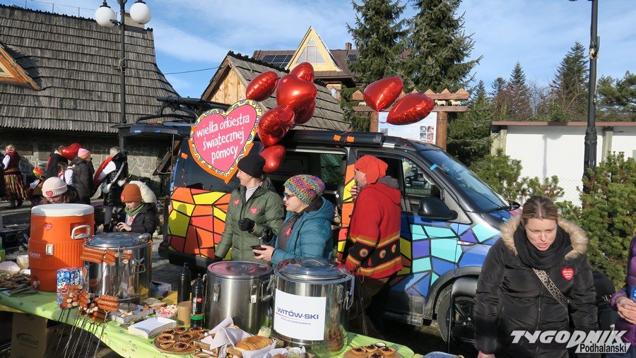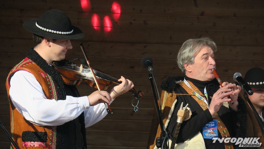 Niedziela w Kościelisku upłynęła na kolorowym 33 Finale Wielkiej Orkiestry Świątecznej Pomocy. Na scenie plenerowej na Chotarzu wystąpiły zespoły nie tylko regionalne: Hop-Cup, Harmider, Martyna Rempała i Kompromitacja. O słodkości zadbały panie z Koła Gospodyń Wiejskich w Kościelisku, a gorącymi i pysznymi daniami gościły wrzucających datki do puszek restauracje, które wspierają szczytne cele zbiórki WOŚP. Wraz z zespołem Harmider wystąpił Jan Karpiel "Bułecka".