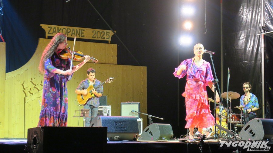 W wiosce festiwalowej w piątkowy wieczór odbył się pierwszy Koncert na Folkową Nutę. Jego bohaterkami były dwie silne osobowości, dwie artystki. Słowacka skrzypaczka Barbora Botošova, która wystąpiła ze swym zespołem i wokalistka Agata Siemaszko. Wybrzmiały nuty szeroko rozumianego Łuku Karpat, melodie rumuńskie, w których pobrzmiewały echa wpływów tureckich, pieśni romskie i żydowskie, niezapomniane przeboje filmowe. Dziś kolejny wieczorny koncert w ramach 56. Międzynarodowego Festiwalu Folkloru Ziem Górskich Zakopane 2025.