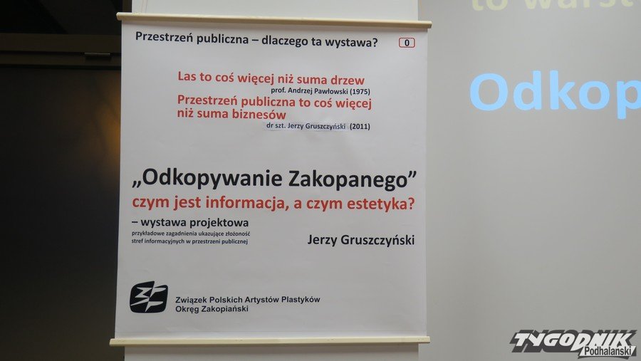 Związek Polskich Artystów Plastyków Okręg Zakopiański w gościnnych progach Domu Wczasowego Hyrny w Zakopanem zorganizował wystawę połączoną z wykładem Jerzego Jurasa Gruszczyńskiego "Odkopywanie Zakopanego". Spotkanie poświęcone było refleksji nad wizualnym chaosem przestrzeni publicznej Zakopanego i szerzej - Podhala.
