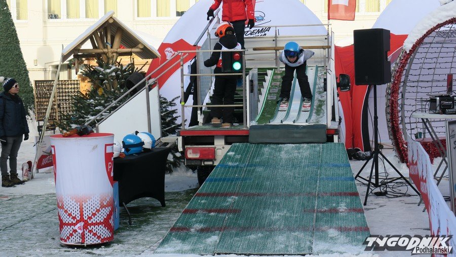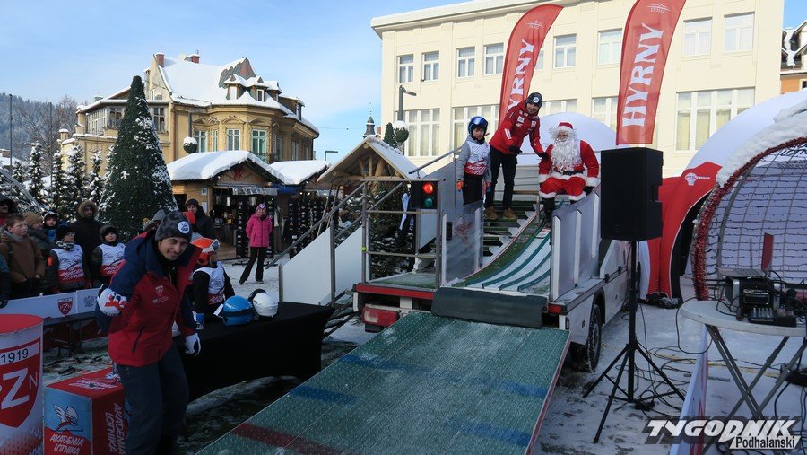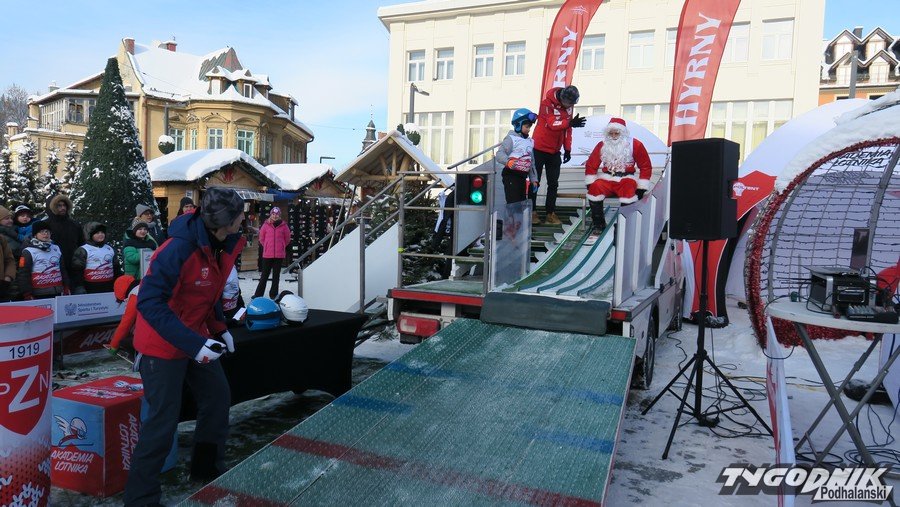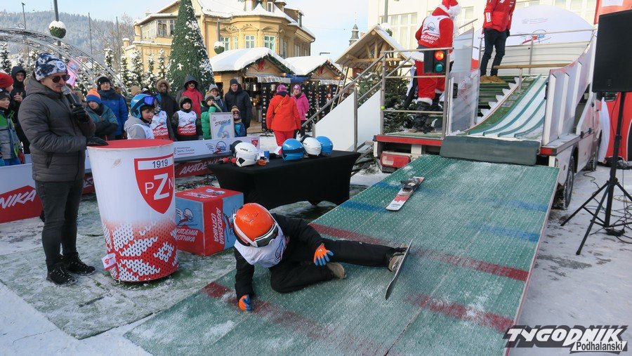 W Zakopanem na Placu Niepodległości trwa trzecia edycja Akademii Lotnika. To wydarzenie pozwalające uczestnikom poczuć się jak skoczek narciarski. Dziś swoich sił próbowali najmłodsi. Odwagą wykazali się też dorośli. Wśród nich najlepiej skakał Święty Mikołaj.