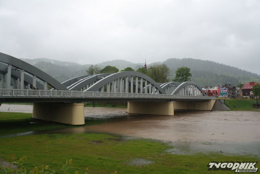 Powoli Dunajec zaczyna zalewać bulwary w Krościenku.