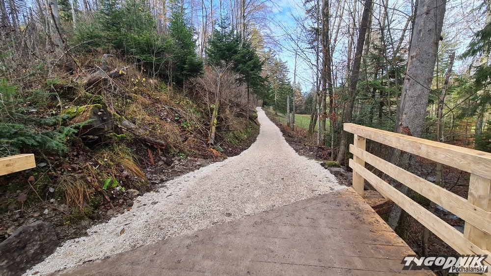 Tak jest m. in. między Doliną Białego a Strążyską, a także dalej w stronę Doliny Za Bramką. Na tym popularnym szlaku na granicy Tatr i Zakopanego powstały też nowe, szerokie mostki. Dzięki tym wszystkim zmianom piesi czują się bardziej komfortowo, szlak może być też dostępny dla osób niepełnosprawnych, a także mniej wprawnych rowerzystów.