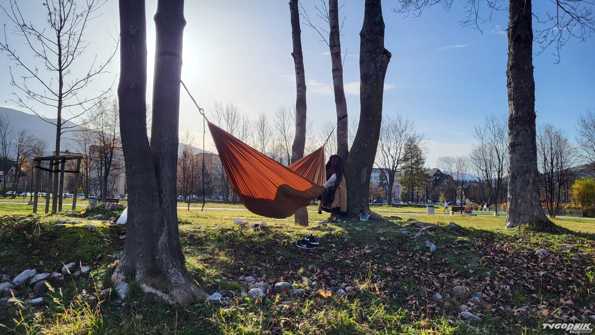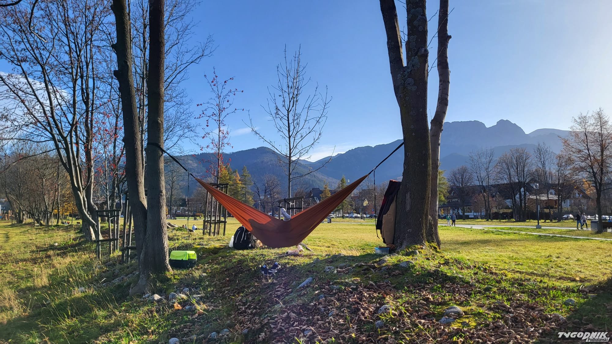 Świetny sposób na niedzielny relaks z Tatrami w tle - wystarczy znaleźć dwa drzewa.