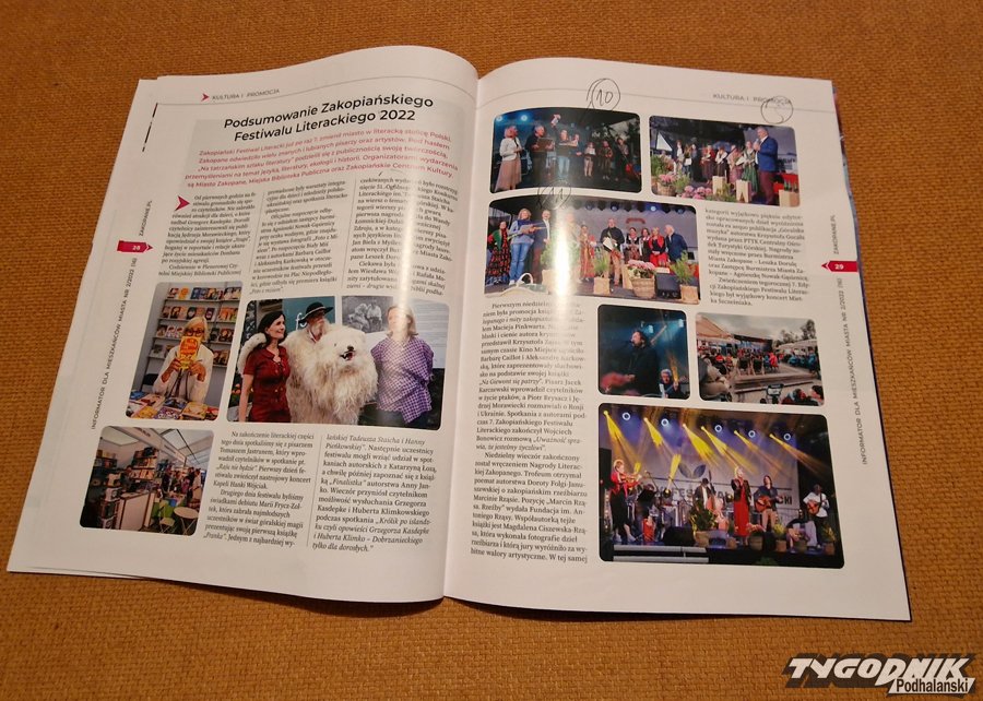 Jak zwykle piękny. Na 32 stronach grubego, kredowego papieru propaganda sukcesu zakopiańskiej władzy. Uwaga ogłaszamy szybki konkurs, na ilu zdjęciach tego 32 stronicowego folderu pojawia się wizerunek burmistrza Zakopanego, Leszka Doruli. Uwaga, można się pomylić tylko o 5. Dla ułatwienia dodamy, że bywają strony, na których twarz naszego gospodarza pojawia się trzykrotnie. Dla osób, które nie mają dostępu do tego urzędowego wydawnictwa mamy alternatywną podpowiedź. Tę cyfrę odszukacie w tytule książki Marka Hłaski "Piękni dwudziestoletni". Na odpowiedź czekamy w Waszych komentarzach na naszej stronie i w mediach społecznościowych. Przyjemnej zabawy :)
