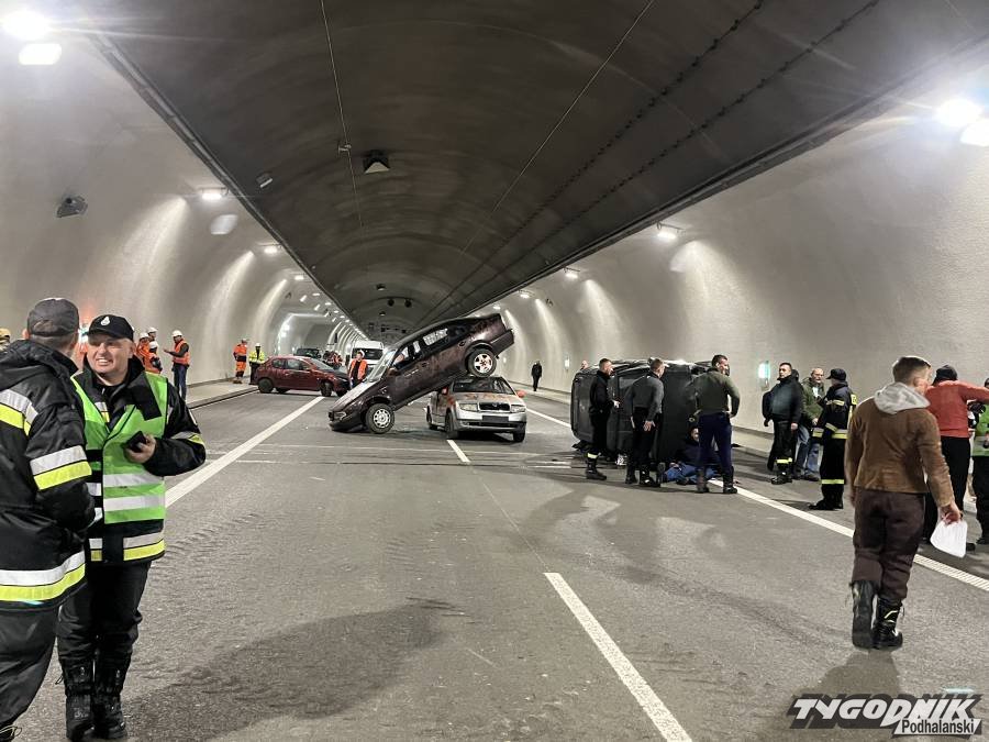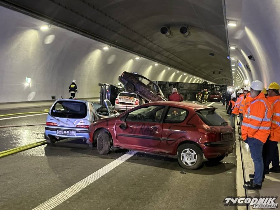 Ćwiczenia koordynujące działania wszystkich służb ratowniczych w tunelu pod Małym Luboniem były jednym z ostatnich warunków dopuszczenia obiektu do użytkowania. Scenariusz manewrów był bardzo bogaty. Zakładał, że w tunelu doszło do karambolu kilku samochodów w tym także autobusu. pojawił się pożar i zadymienie. Wszelkie systemy bezpieczeństwa zadziałały perfekcyjnie. Z głośników popłynął komunikat w kilku językach nawołujący do ewakuacji. Włączyła się system przewietrzania. błyskawicznie na miejscu zdarzenia pojawiły sie służby ratownicze. najpierw... jednostka OSP. Chwilę później wozy państwowej Straży Pożarnej, zespoły ratownictwa medycznego i policja. Przyleciał również śmigłowiec Lotniczego Pogotowia Ratunkowego z Krakowa. dla podniesienia realizmu, statyści zostali ucharakteryzowani. A wnętrze tunelu wypełniły wraki pojazdów. Ratownicze manewry trwały kilka godzin. Podróżni będą mogli przejechać tunelem już w sobotę, wtedy bowiem nastąpi uroczyste otwarcie budowli i przekazanie jej do użytku.
