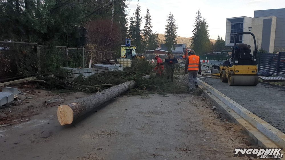 Na ul. Żeromskiego w Zakopanem wycinają drzewa (WIDEO)