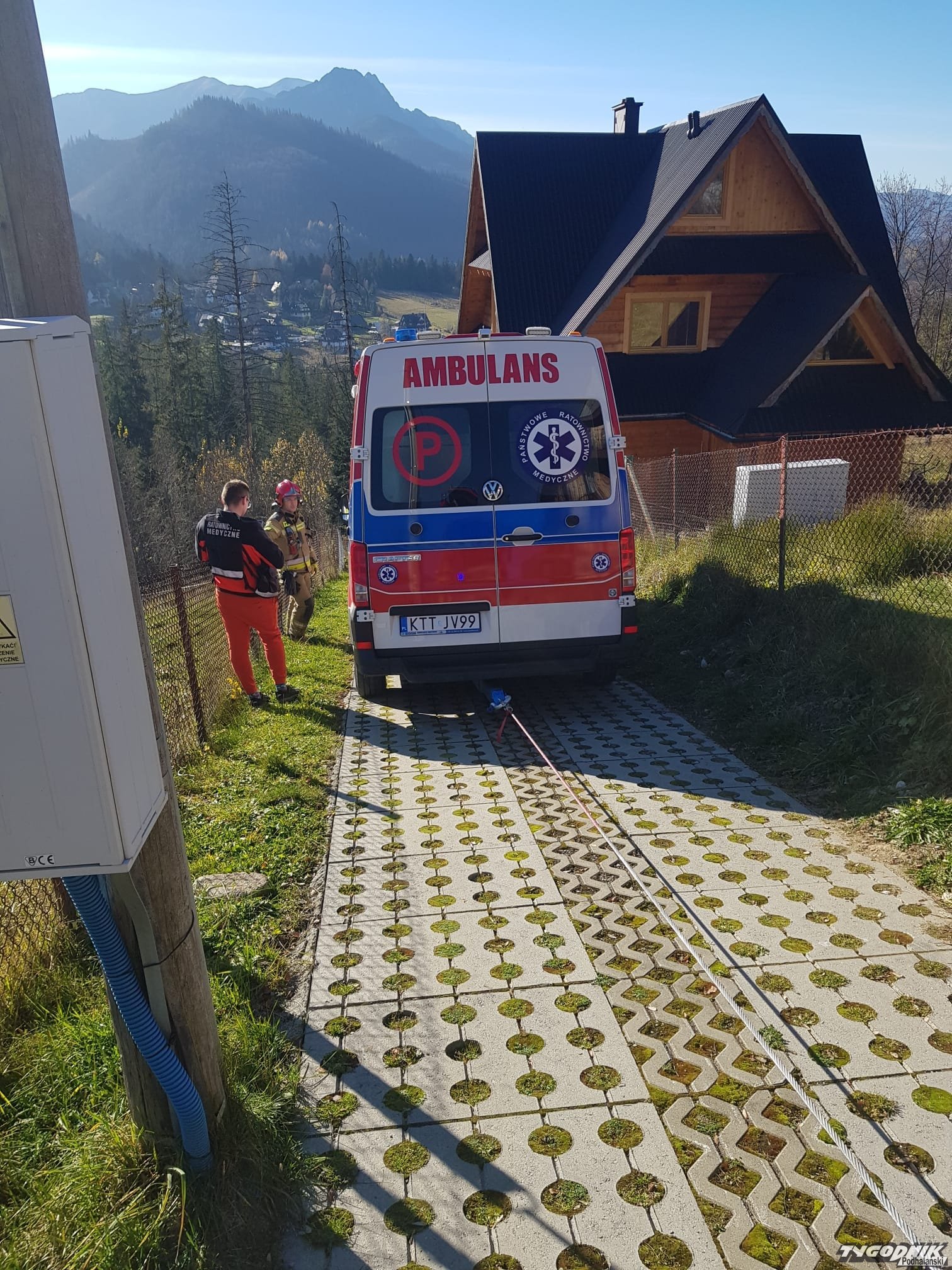 Relacja strażaków z Komendy Powiatowej Państwowej Straży Pożarnej w Zakopanem: "w wyniku uszkodzenia układu sprzęgła i napędu w karetce ZRM nie mógł  pokonać dużej stromizny i wyjechać z posesji z osobą poszkodowaną wymagającą pilnego transportu do szpitala, z pomocą przyszedł zastęp JRG KP PSP Zakopane z wyciągarką mechaniczną. Karetka pogotowia została wyciągniętą z posesji, osoba bezpiecznie trafiła do szpitala."