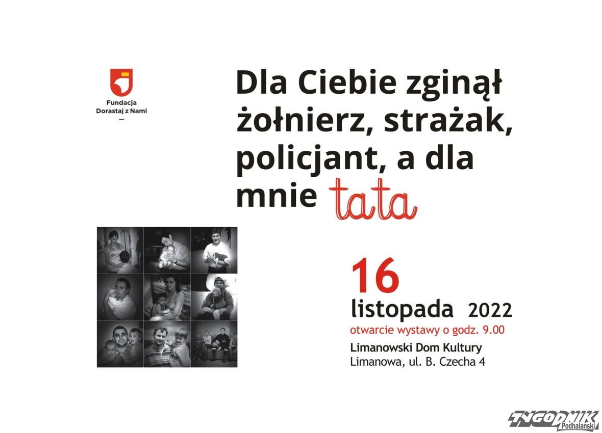 Już w środę 16.11 w Limanowskim Domu Kultury otwarta zostanie wystawa zatytułowana "Dla Ciebie zginął żołnierz, strażak, policjant, a dla mnie tata".