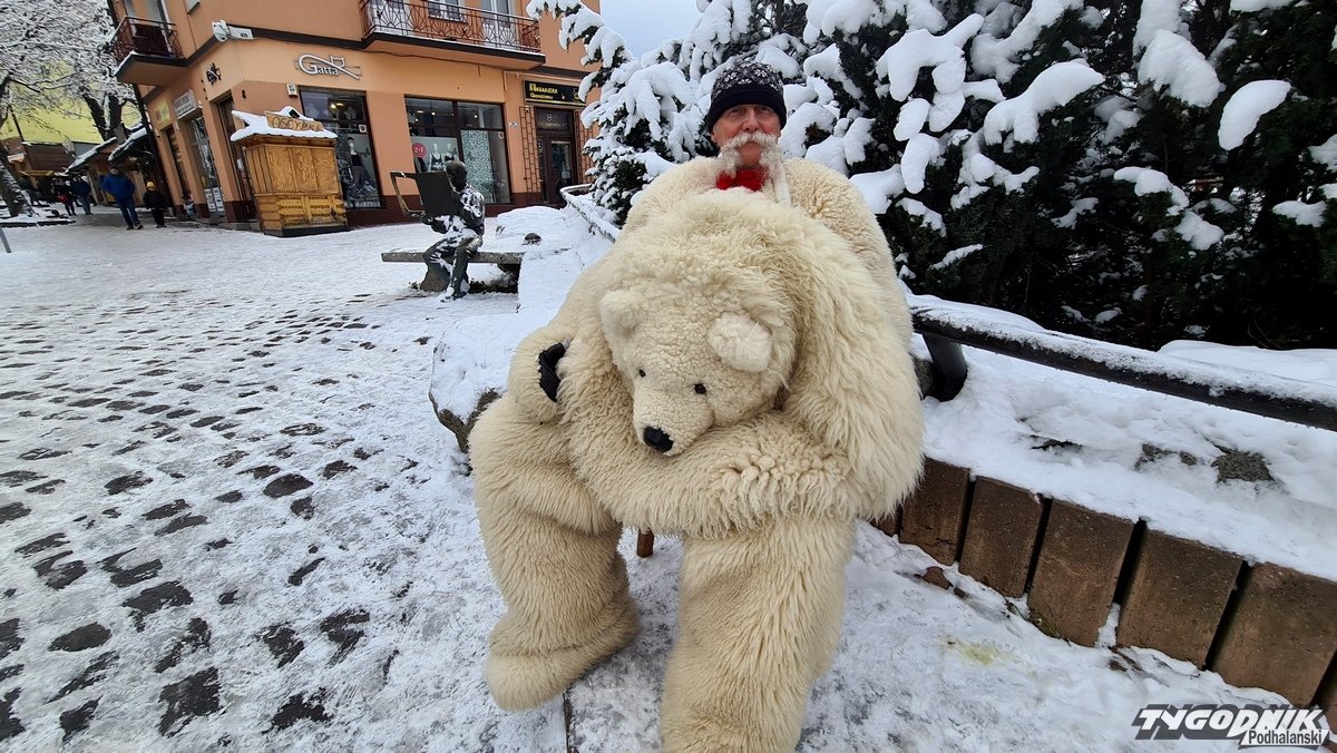 Biały miś z Krupówek o nadchodzącej zimie i turystach (WIDEO)