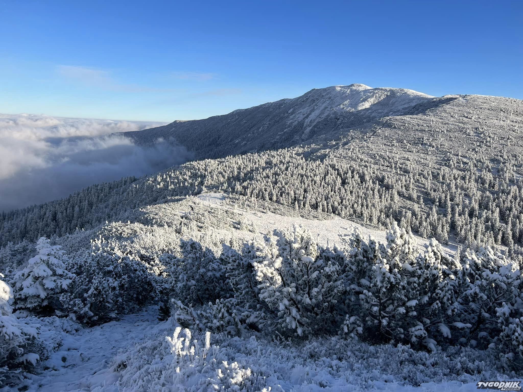 Góra została już przykryta białą pierzynką.