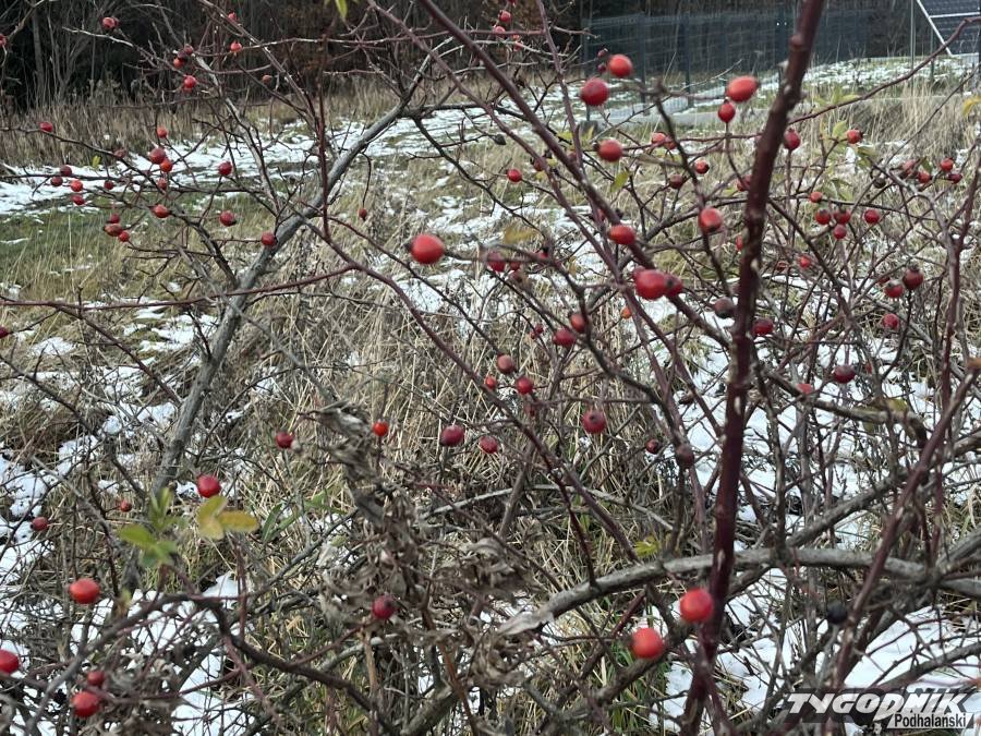 Jak twierdzą prawdziwi koneserzy leśnych owoców właśnie teraz, po mrozach jest czas na zbieranie dzikiej róży. Owoce są już nieco zmacerowane ale za to pełne aromatu. Gdyby ktoś miał ochotę zebrać główny składnik nalewki. Zdradzamy - ten krzak oblepiony owocami rośnie przy niebieskim szlaku pomiędzy przełączą Spytkowicką a górną stacją wyciągu Beskid w Spytkowicach.