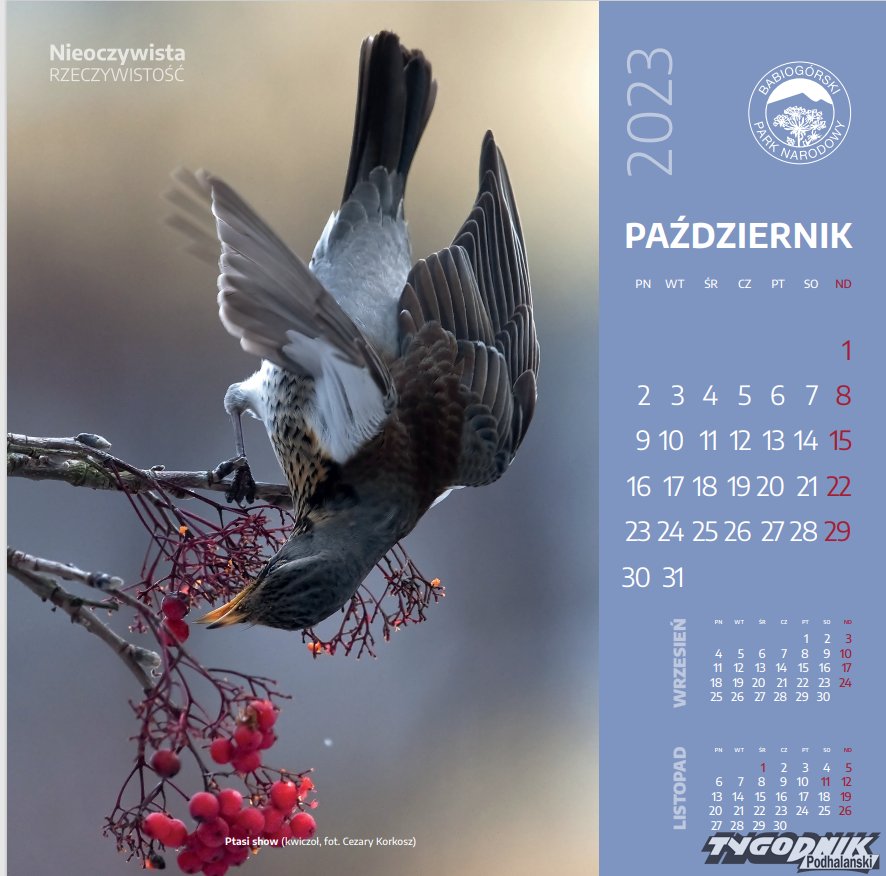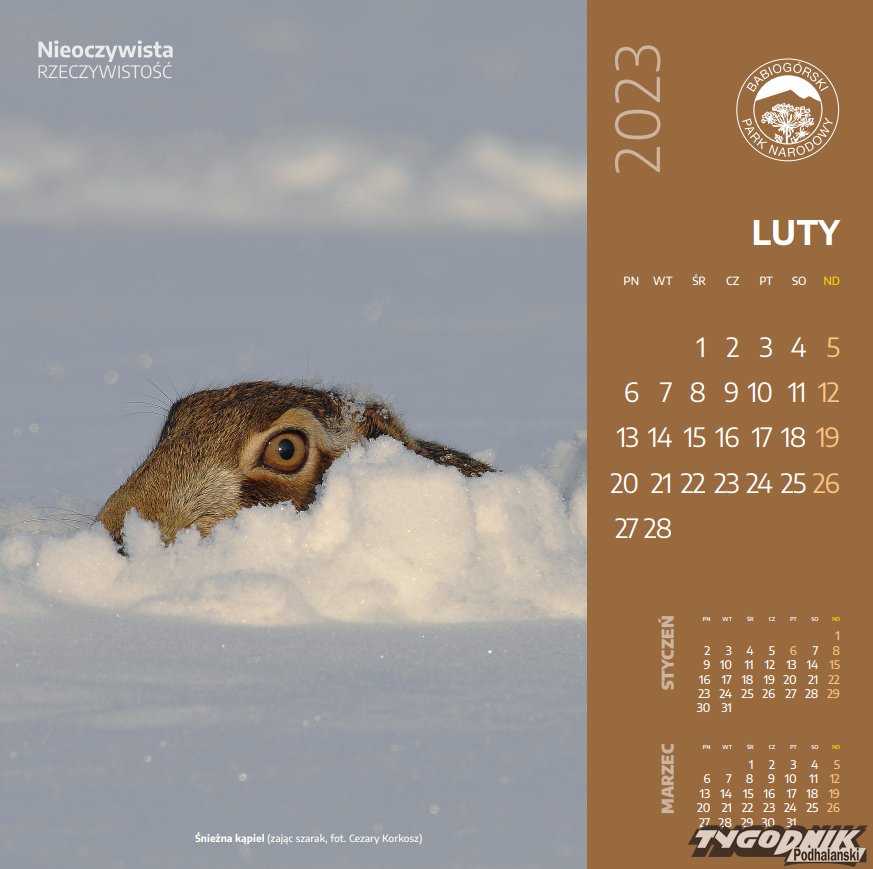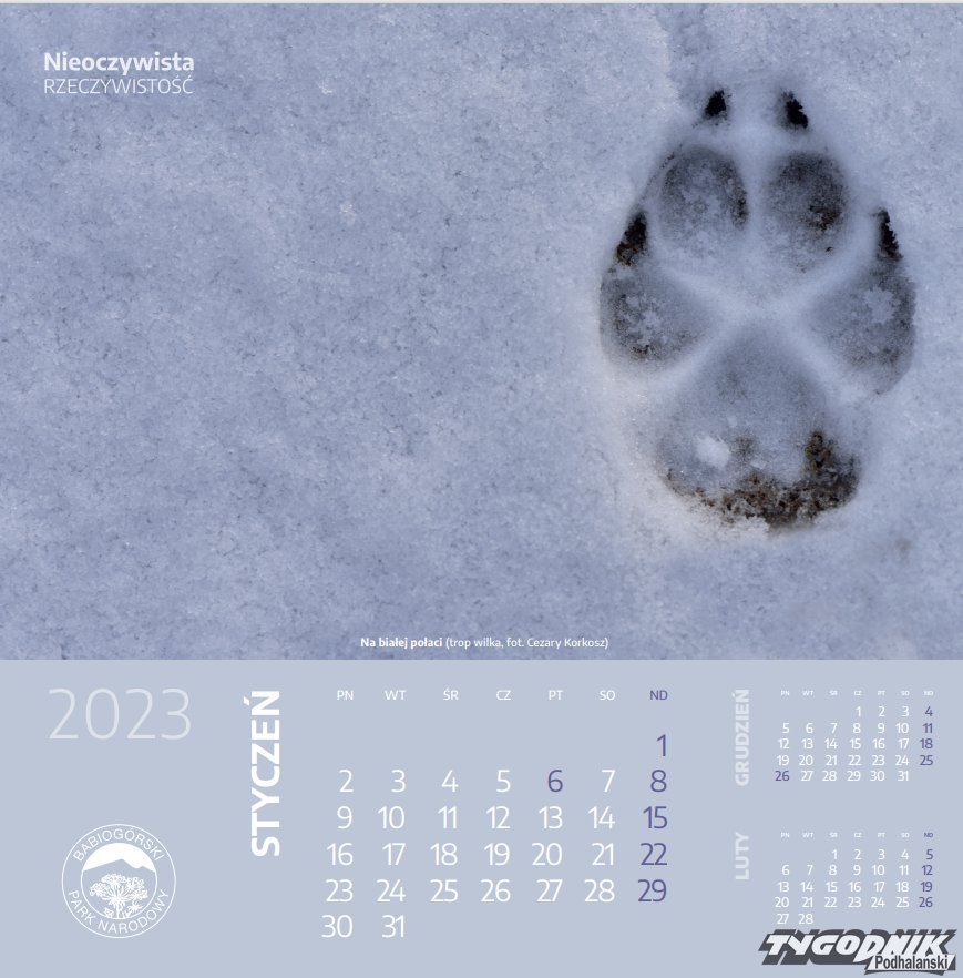 Zwierzaki na kalendarzu Babiogórskiego Parku Narodowego.