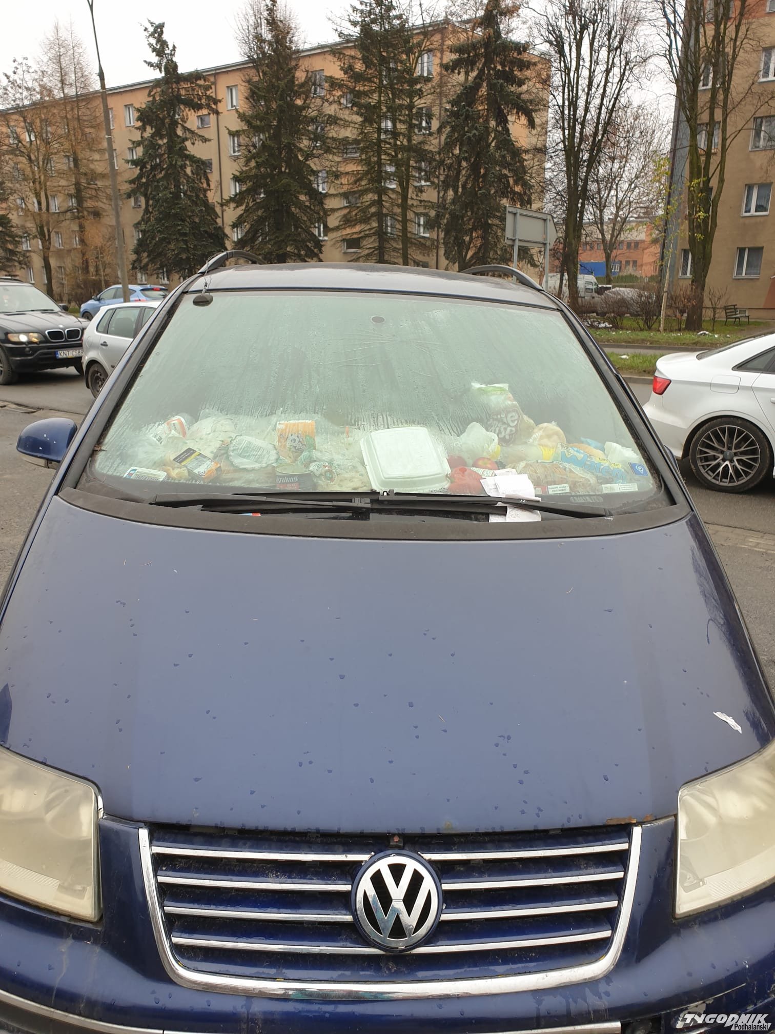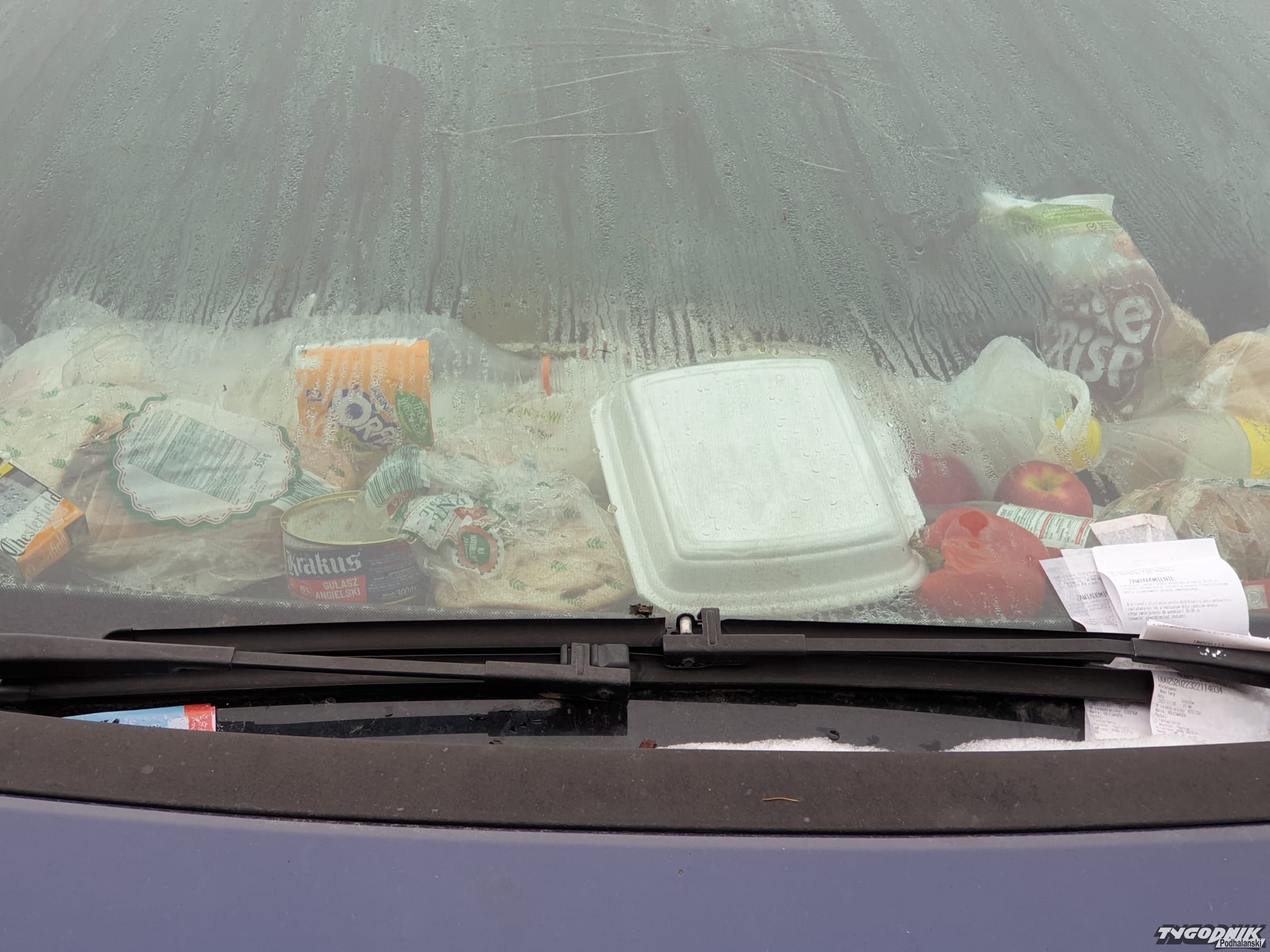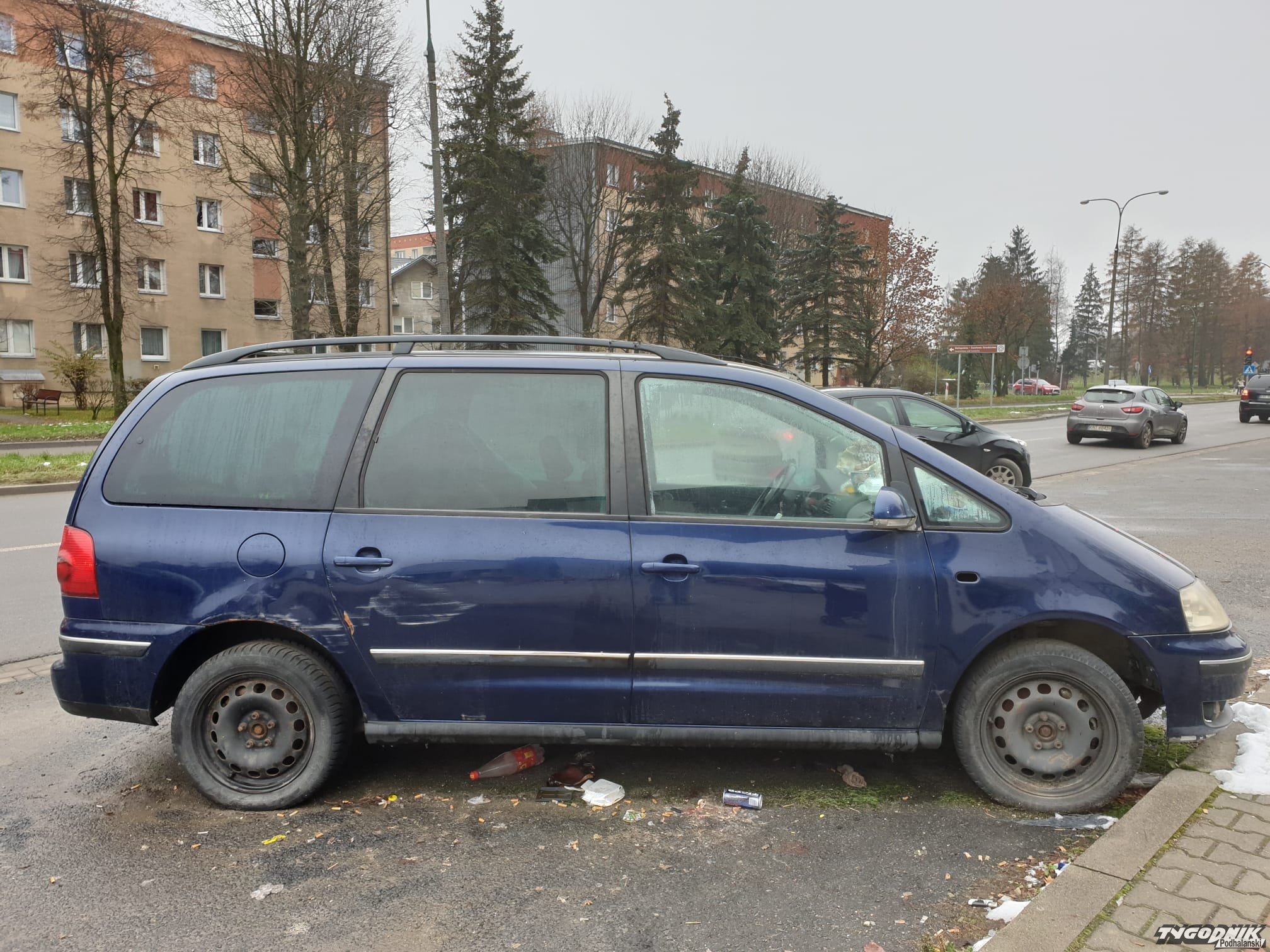 Samochodowa noclegownia. Prawdopodobnie auto zagospodarowali bezdomni.