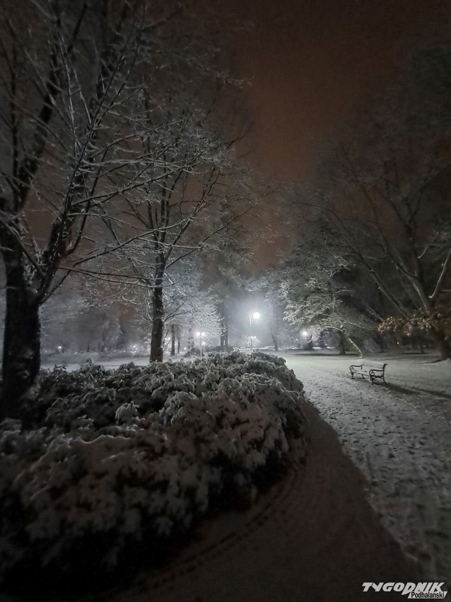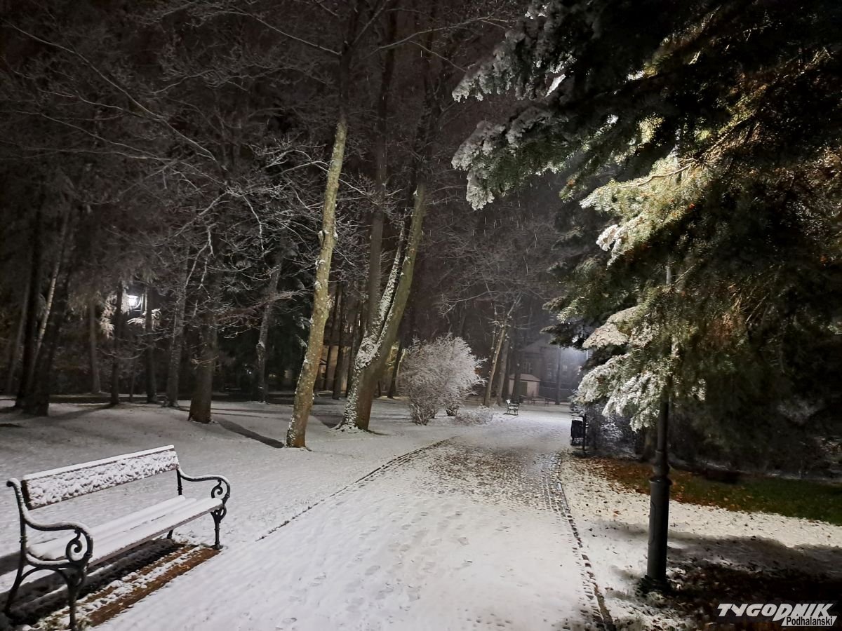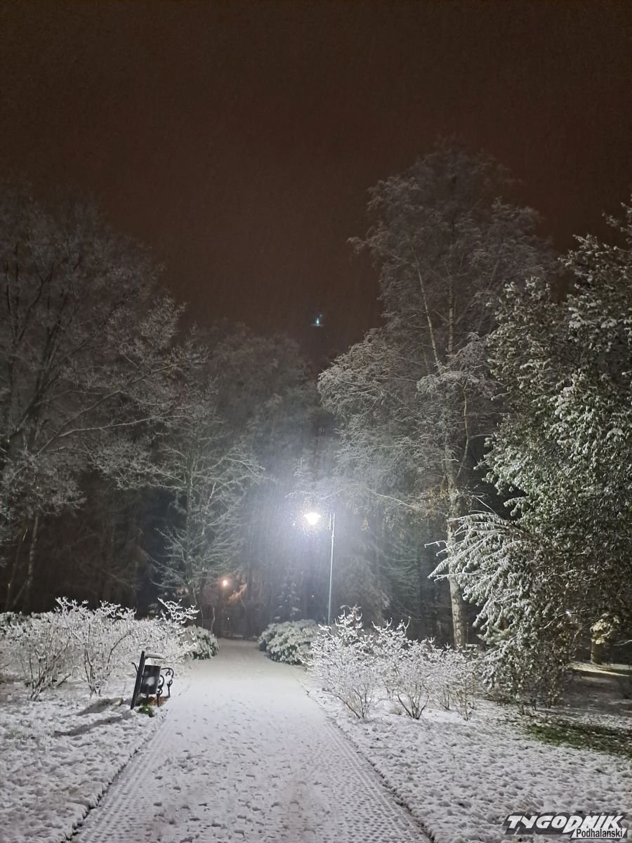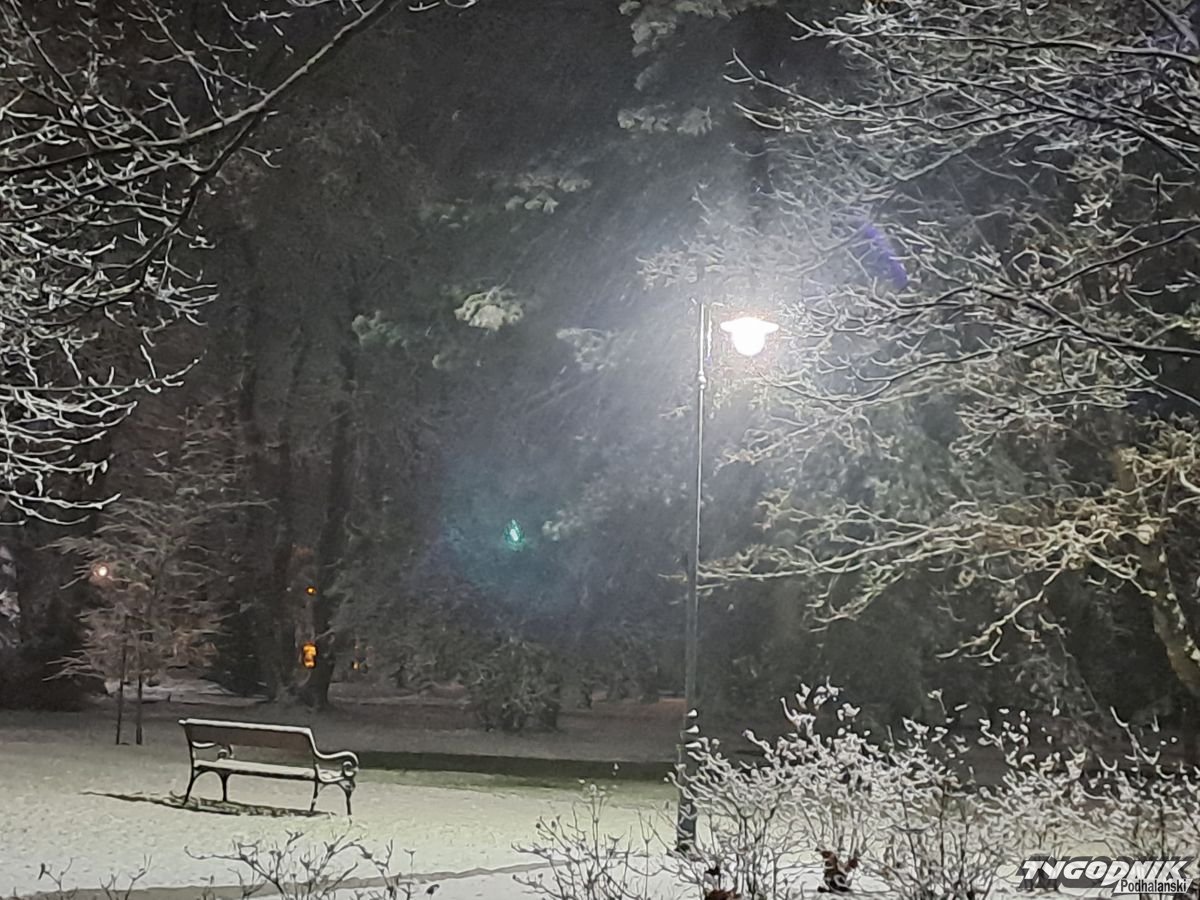 Rabczański park wieczorową porą - śnieżna bajka (zdjęcia)