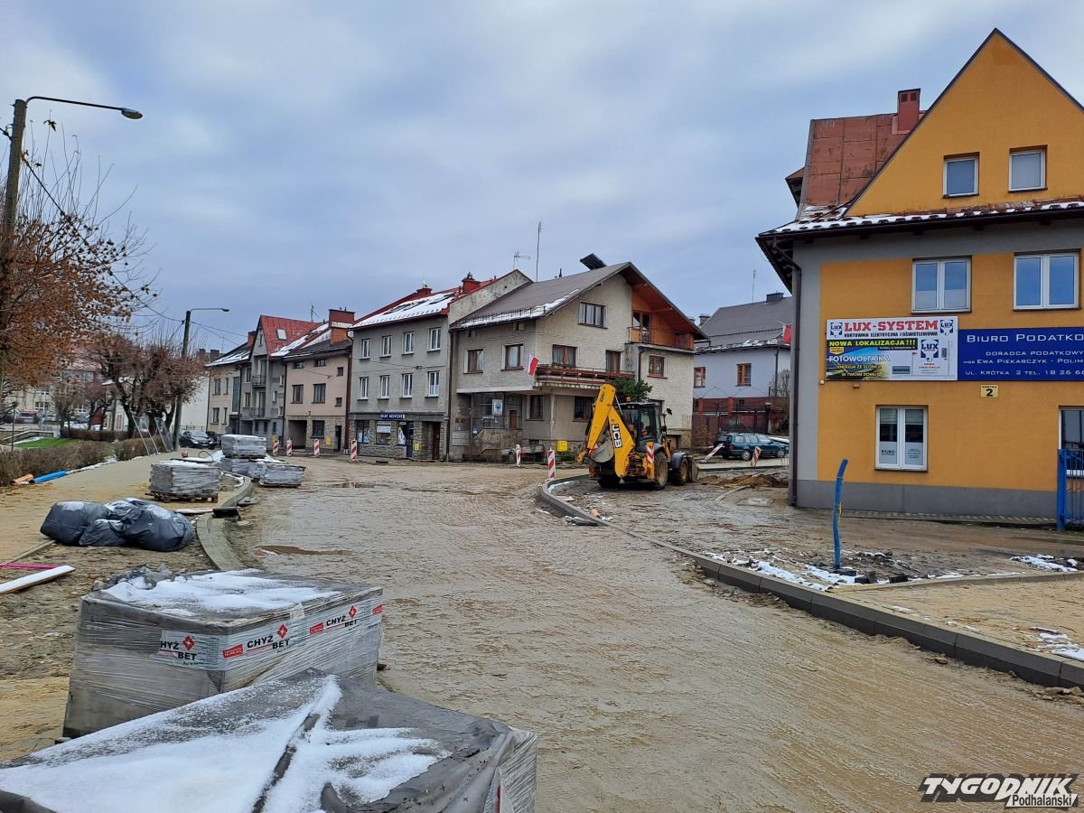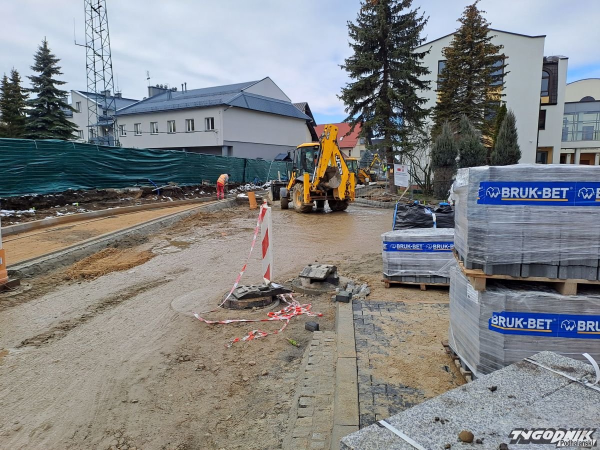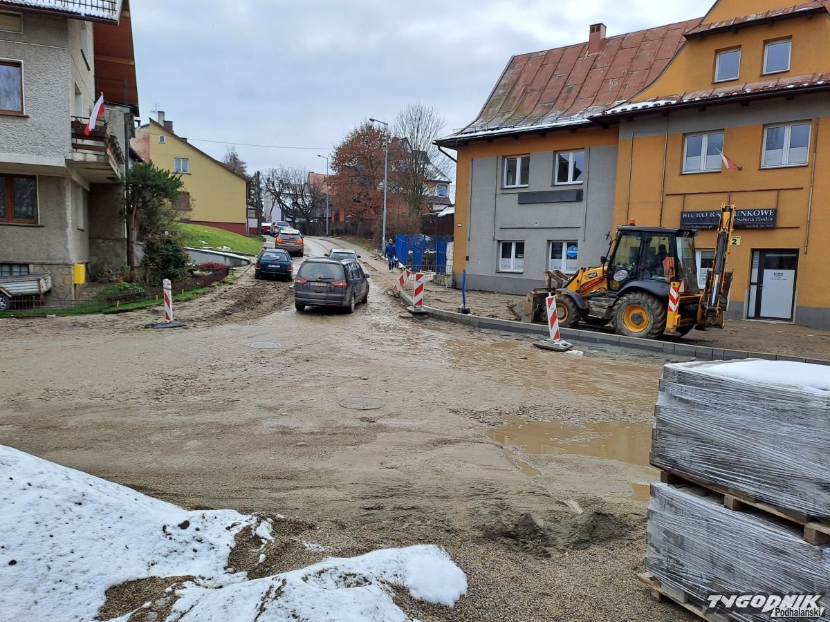 Trwa przebudowa ulicy Parkowej w Nowym Targu. Ruch na placu budowy jest spory a wszystko odbywa się przy możliwym dojeździe do skarbówki czy okolicznych domów.