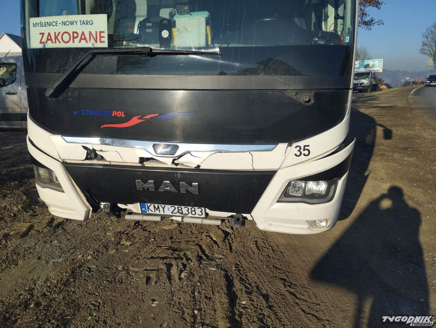 Wypadkowy poranek na drogach powiatu nowotarskiego w Klikuszowej autobus zderzył się z osobówką