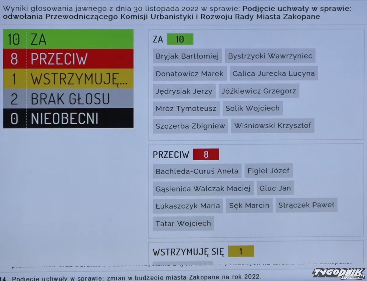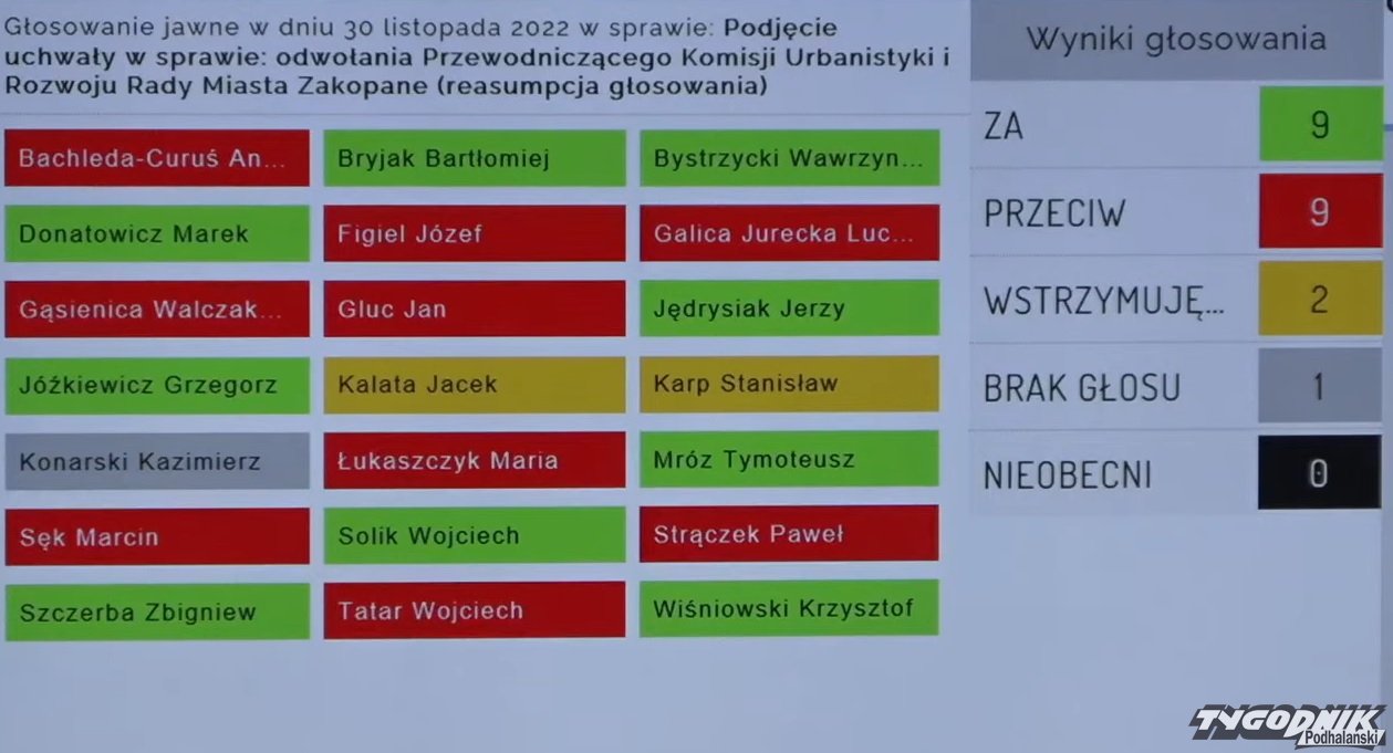 Potrzebna była reasumpcja głosowania, aby Jacek Kalata mógł nadal pełnić funkcję przewodniczącego Komisji Urbanistyki i Rozwoju Zakopanego.
