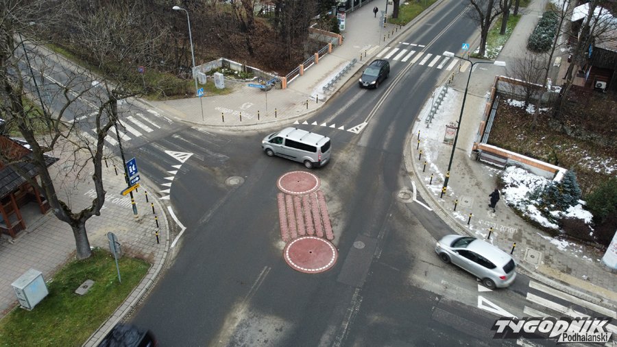 Na szczęście na razie bez kolizji na nowym rondzie na skrzyżowaniu ulic Sienkiewicza i Kościuszki w Zakopanem.