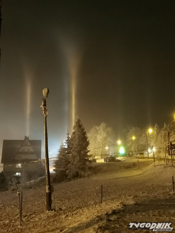 Białe słupy świetlne w Bukowinie Tatrzańskiej