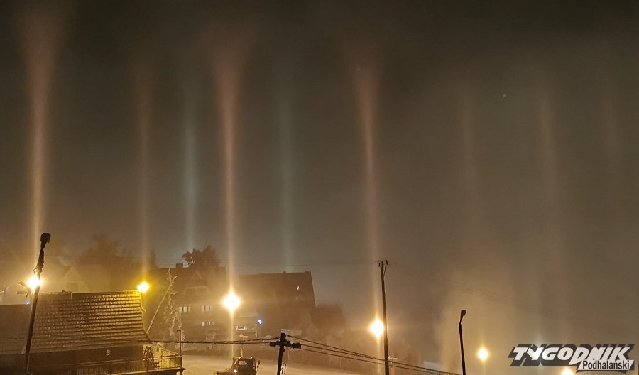 Nocą mieszkańcy Bukowiny Tatrzańskiej mogli obserwować słupy świetlne.