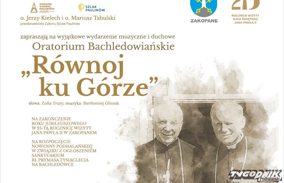 "Równoj ku Górze" - Oratorium Bachledowiańskie powstało dla uczczenia osoby i myśli błogosławionego kardynała Stefana Wyszyńskiego i na zakończenie Jubileuszu 550-lecia fundacji Skałki i obecności oo. Paulinów w Krakowie. W Zakopanem wykonane zostanie na zakończenie Roku Jubileuszowego w 25. rocznicę wizyty Jana Pawła II w Zakopanem i na rozpoczęcie Nowenny Podhalańskiej w związku z ogłoszeniem Sanktuarium Bł. Prymasa Tysiąclecia na Bachledówce.