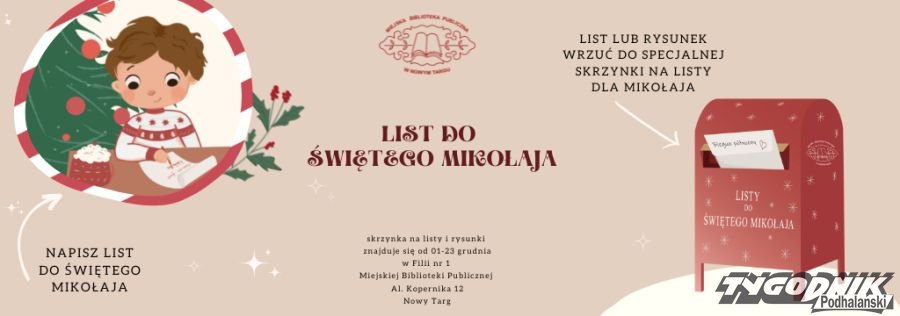 W grudniu Miejska Biblioteka Publiczna w Nowym Targu zachęca wszystkie dzieci do wysłania listu do Świętego Mikołaja.