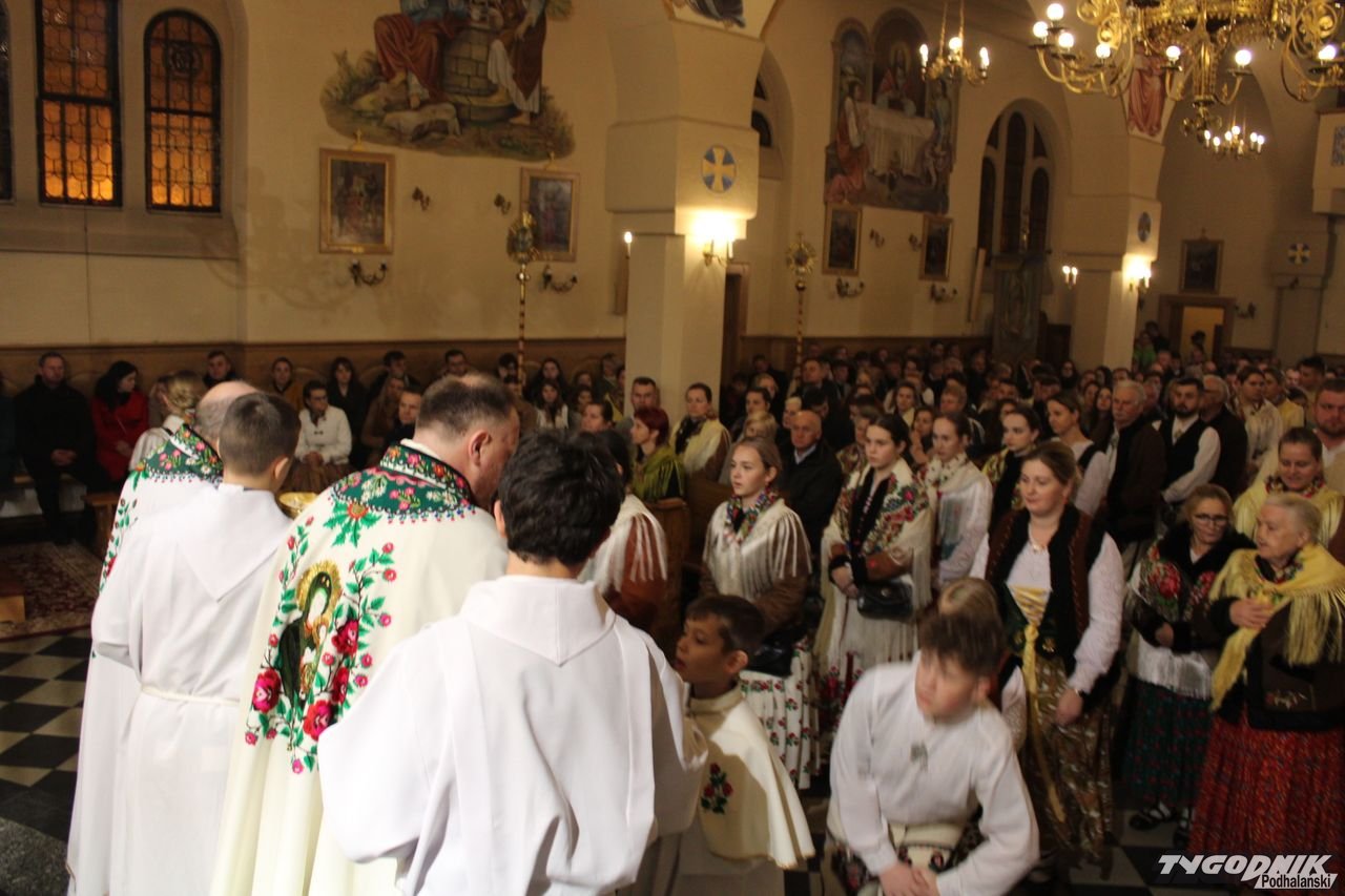 Górale z parafii w Miętustwie (należą do niej mieszkańcy Cichego, Starego Bystrego, Ratułowa i Czerwiennego) przywitali Nowonarodzonego punktualnie o północy z 24 na 25 grudnia. Pasterkę prowadził ks. wikary Krzysztof Pierzchała. W procesji na wejście niósł figurę Bożego Syna, którą umieścił w szopce przed ołtarzem.