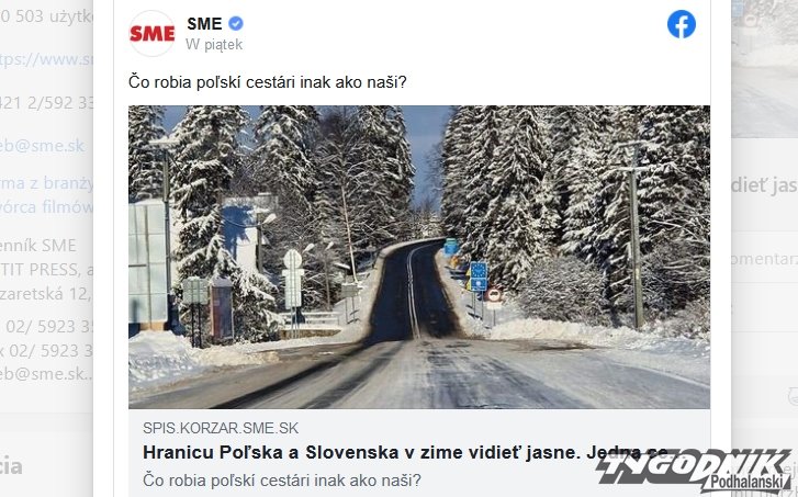 Portal publikuje zdjęcie z granicy w Jurgowie. Widać na nim zaśnieżoną drogę na Słowacji i odśnieżoną krajową drogę w Polsce. Jak pisze Korzar.sk różnicę widać gołym okiem. Zdjęcie w mediach społecznościowych opublikował Duszan Kolcun z Koszyc. Wpis wywołał wiele komentarzy.