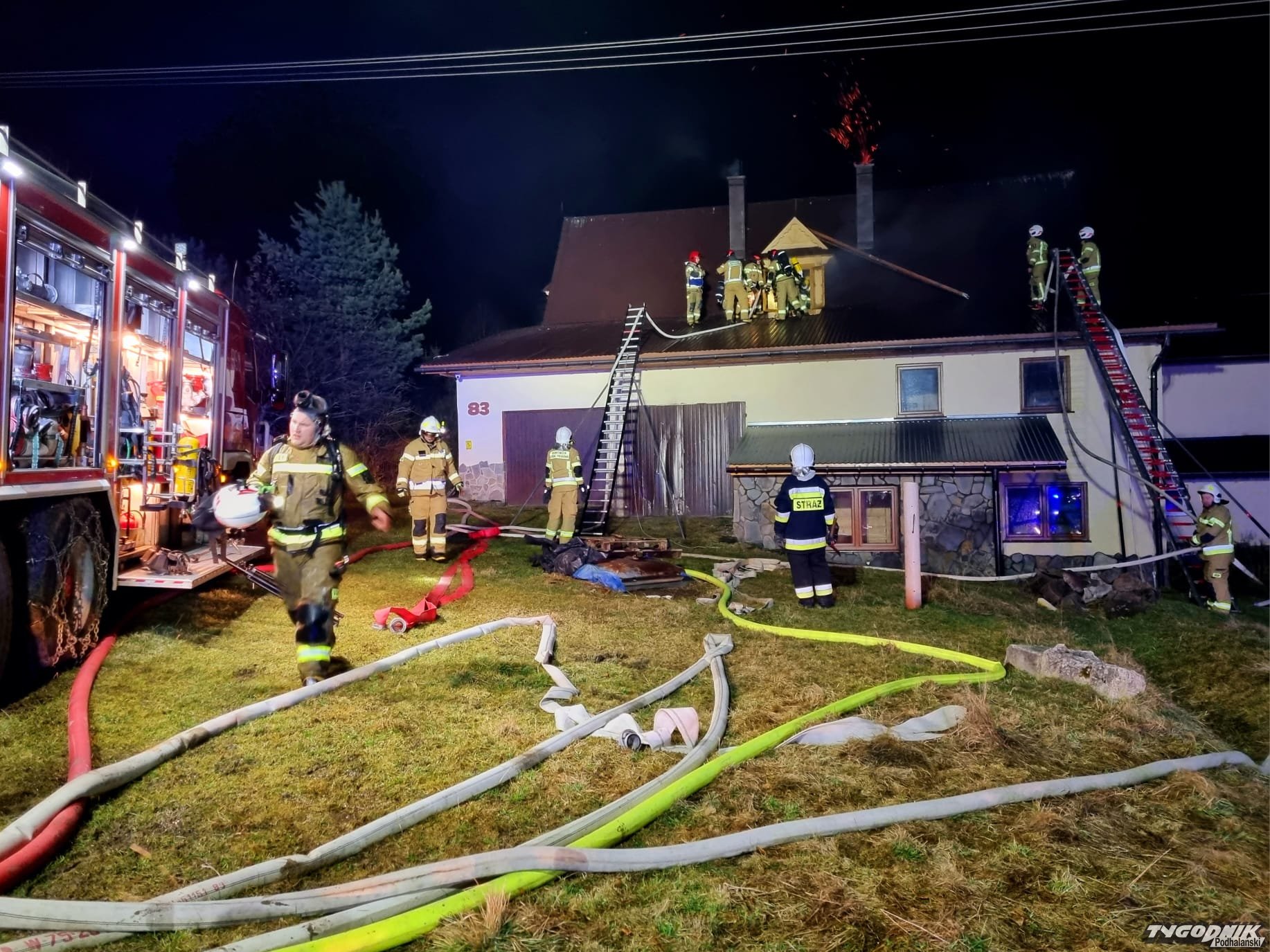 Kilka jednostek Straży Pożarnej walczy z pożarem domu w Dzianiszu.