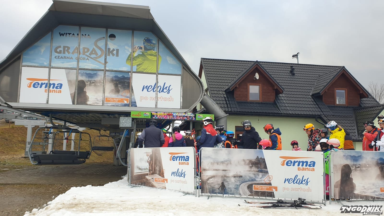 W Czarnej Górze narciarze mają co robić. Mimo temperatury powyżej zera, pokrywa śnieżna sięga tu wciąż jednego metra. Sam stok został poszerzony, powstał też pierwszy śnieżny tunel narciarski na Podhalu. A, że narciarzy nie brakuje, to wyciąg pracuje pełną parą. Trzeba postać kilka minut w kolejce, ale nikt nie narzeka. W końcu tu można poczuć prawdziwą zimę. Choć przez kilka godzin na stoku.