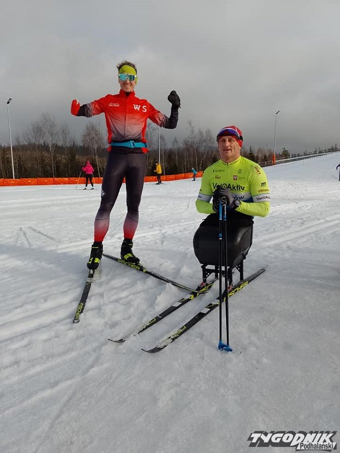 Kolejny zwrot w życiu chłopaka nastąpił w 2011 r. Wówczas to za namową ojca, w którego firmie od zakończenia szkoły pracował, zapisał się na kurs prawa jazdy. Szkołę, w której rozpoczął naukę, założył Marian Damian, niepełnosprawny, jednoręki biegacz narciarski. - Nie lubiłem branży ubezpieczeniowej, ale nie mogę powiedzieć, że zdecydowałem się zrobić prawo jazdy tylko po to, żeby zmienić pracę. Po prostu chciałem spróbować - wyjaśnia. I choć lekcji jazdy udzielał mu instruktor pełnosprawny, to wieść o tym, że trafił się kursant z niepełnosprawnością, szybko dotarła do właściciela szkoły. - Powiedzieli, że przyjedzie prezes sądeckiego Klubu Sportowego Start, żeby mnie sobie obejrzeć. A gdy oględziny wypadły pomyślnie, kazano mi trenować biegi i czekać. Co tu dużo mówić, zapaliłem się do tego pomysłu - tłumaczy. Już w grudniu 2011 r. dostał z klubu nowe buty narciarskie. A w styczniu 2012 r. pojechał na pierwsze zgrupowanie. Biegać na nartach uczył się jednak od postaw. Bo choć pamięta, że w szkole w Kluszkowcach nart biegowych było pełne pomieszczenie, to kolejni wuefiści nie zaszczepili uczniom tej pasji. Trudnością, z jaką zderzył się już na wstępie, była konieczność biegania bez kijków. Nie dyskwalifikowało go to jednak jako sportowca. Przeciwnie! Miał korzystniejszy przelicznik niepełnosprawności w stosunku do zawodników z kijkami. Już w lutym 2012 r. wziął więc udział w Biegu Piastów w Jakuszycach. W marcu pojechał na obóz w Kościelisku. We wrześniu do Wisły. A od października 2012 r. oficjalnie stał się zawodnikiem Klubu Sportowego Start w Nowym Sączu i rozpoczął karierę sportową. Największym wyróżnieniem w tych pierwszych latach było powołanie go do reprezentacji Polski na Igrzyskach Paraolimpijskich w Soczi (2014 r.), z których wrócił z 6. miejscem w sztafecie i uzyskaniem stypendium sportowego.
