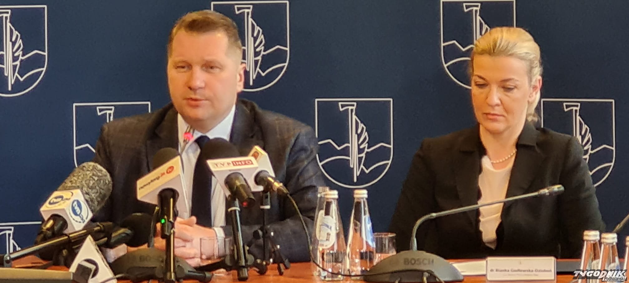 Minister Czarnek nie szczędził podczas konferencji pochwał dla Bianki Godlewskiej - Dzioboń, która już ponad rok sprawuje rządy, po głośnym odwołaniu rektora Roberta Włodarczyka w grudniu 2021 r.